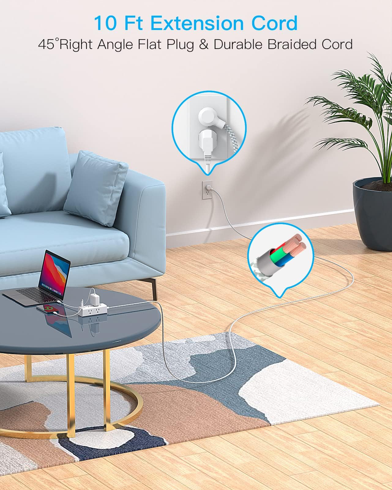 - 【מפצל חשמל שולחני 9 ב-1 עם טעינה מהירה מסוג USB C】—עם 6 שקעי AC, 2 יציאות USB ומפצל חשמל USB C אחד, ניתן להפעיל 9 מכשירים בו זמנית. יציאת טעינה USB C כוללת 3A מקסימום, יציאת טעינה USB A כוללת 2.4A מקסימום. עם טכנולוגיית טעינה חכמה, הוא יכול לזהות אוטומטית את המכשירים המחוברים שלך ולהגיע ליעילות טעינה מהירה יותר, שתטען את המכשירים שלך ללא מגוון ממירים.
