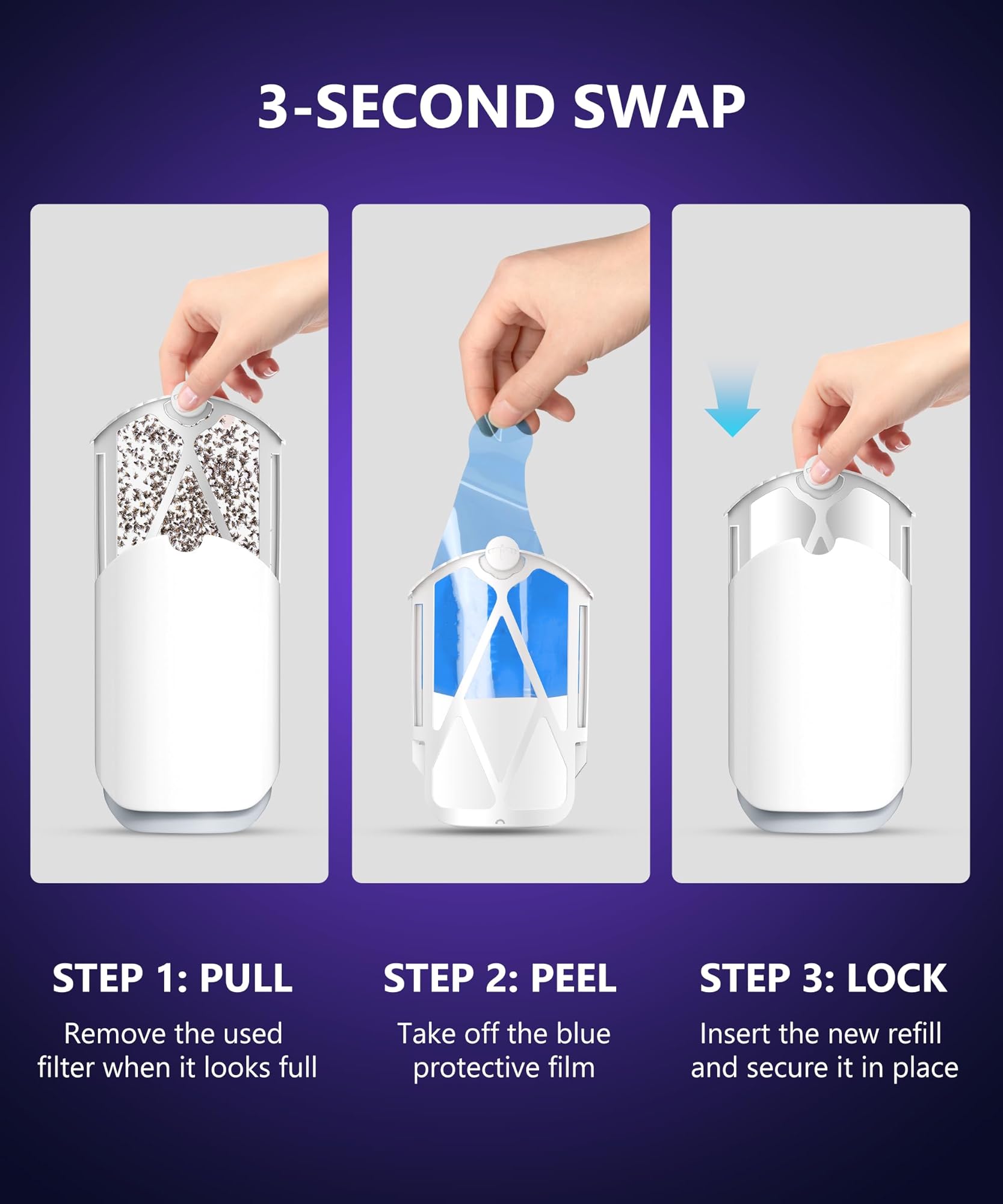 - החלפה ללא מאמץ - פשוט לקלף, להכניס ולהחליף - בלי לכלוך, בלי טרחה. עוצב לתחזוקה מהירה וקלה.