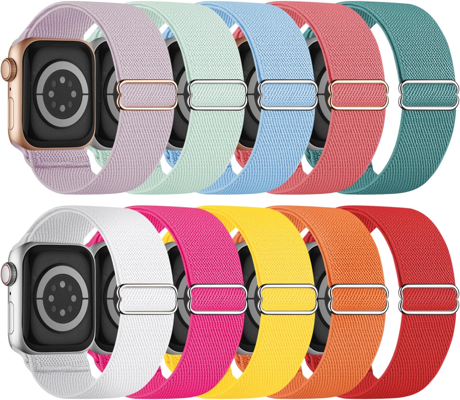 חבילה של 10 רצועות גמישות תואמות לרצועת שעון אפל 40 מ"מ 38 מ"מ 41 מ"מ 42 מ"מ 44 מ"מ 45 מ"מ 46 מ"מ 49 מ"מ נשים גברים, רצועות ספורט אלסטיות עמידות במים Solo Loop ל-iWatch סדרה 11 10 9 8 7 6 5 4 3 SE Ultra