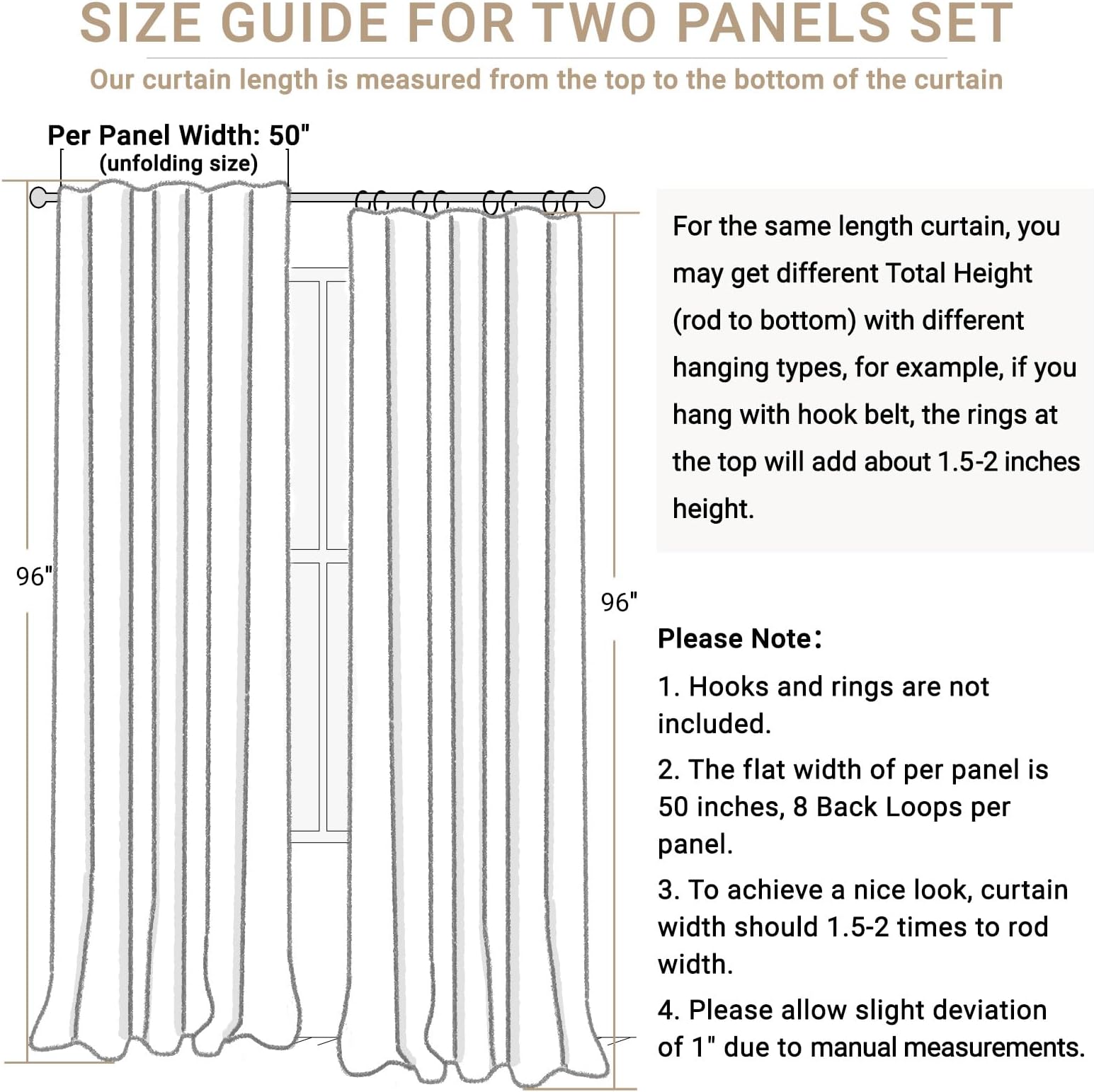 - האריזה כוללת: כלולים 2 וילונות האפלה עמידים. כל וילון ברוחב 50x96 אורך (אינץ'), רוחב הווילון הכולל הוא 100 אינץ'. אנא בדקו את מדריך המידות לפני הרכישה, מדדו את רוחב וגובה החלון מראש כדי להשיג את האפקט הדקורטיבי והפונקציונלי הרצוי.