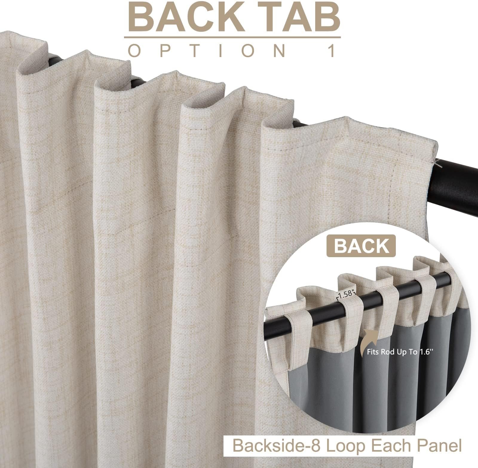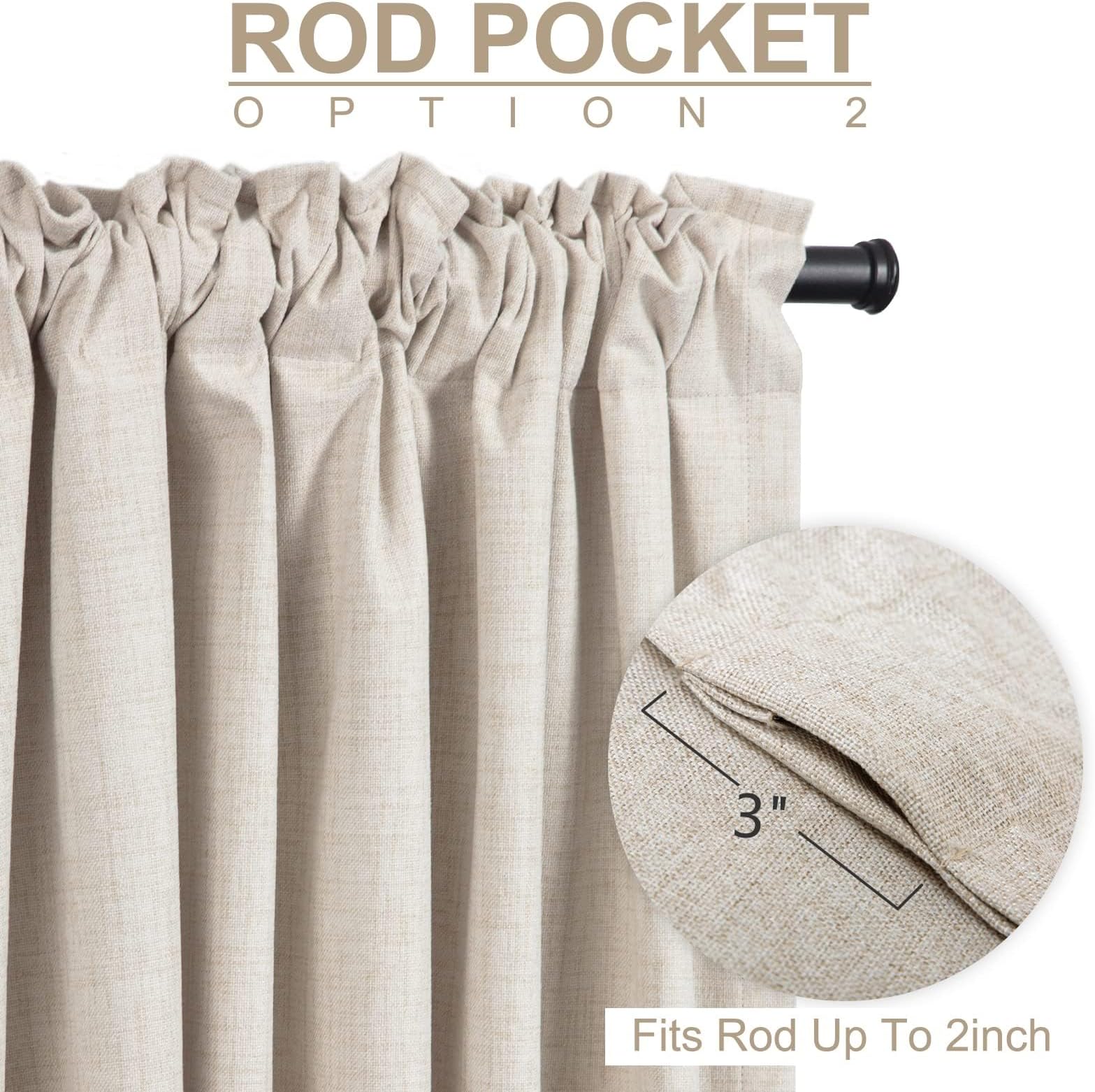 וילונות האפלה 100% פשתן מגן לחדר שינה באורך 96 אינץ', וילונות לסלון עם כיס אחורי/מוט, סט 2 וילונות האפלה מבודדים תרמית, רוחב 50 אינץ' x אורך 96 אינץ', קרם