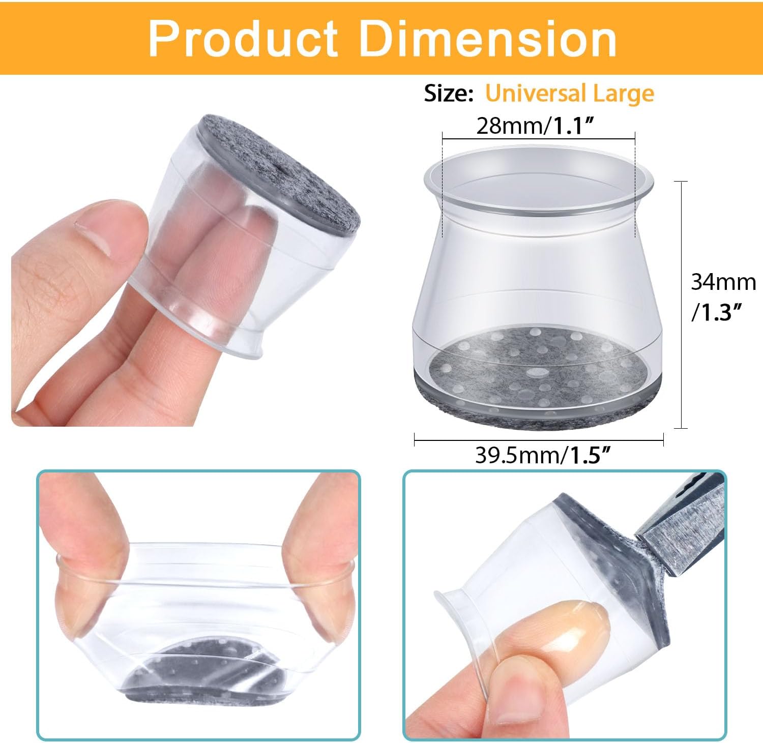 - 【גודל נפוץ】 מתאים לרגליים עגולות בקוטר של 33-50 מ"מ (1-5/16 אינץ' עד 2 אינץ') ולרגליים מרובעות עם אורך צד של 29-40 מ"מ (1-3/16 אינץ' עד 1-9/16 אינץ'). מתאים לרגלי כיסאות עם היקף של 116-160 מ"מ (4-6/16 אינץ' עד 6-4/16 אינץ'). עקב השימוש בסיליקה ג'ל רך אלסטי במיוחד, ייתכן עיוות קל. עם זאת, העיוות לא ישפיע על השימוש, אינכם צריכים להתעסק בו.