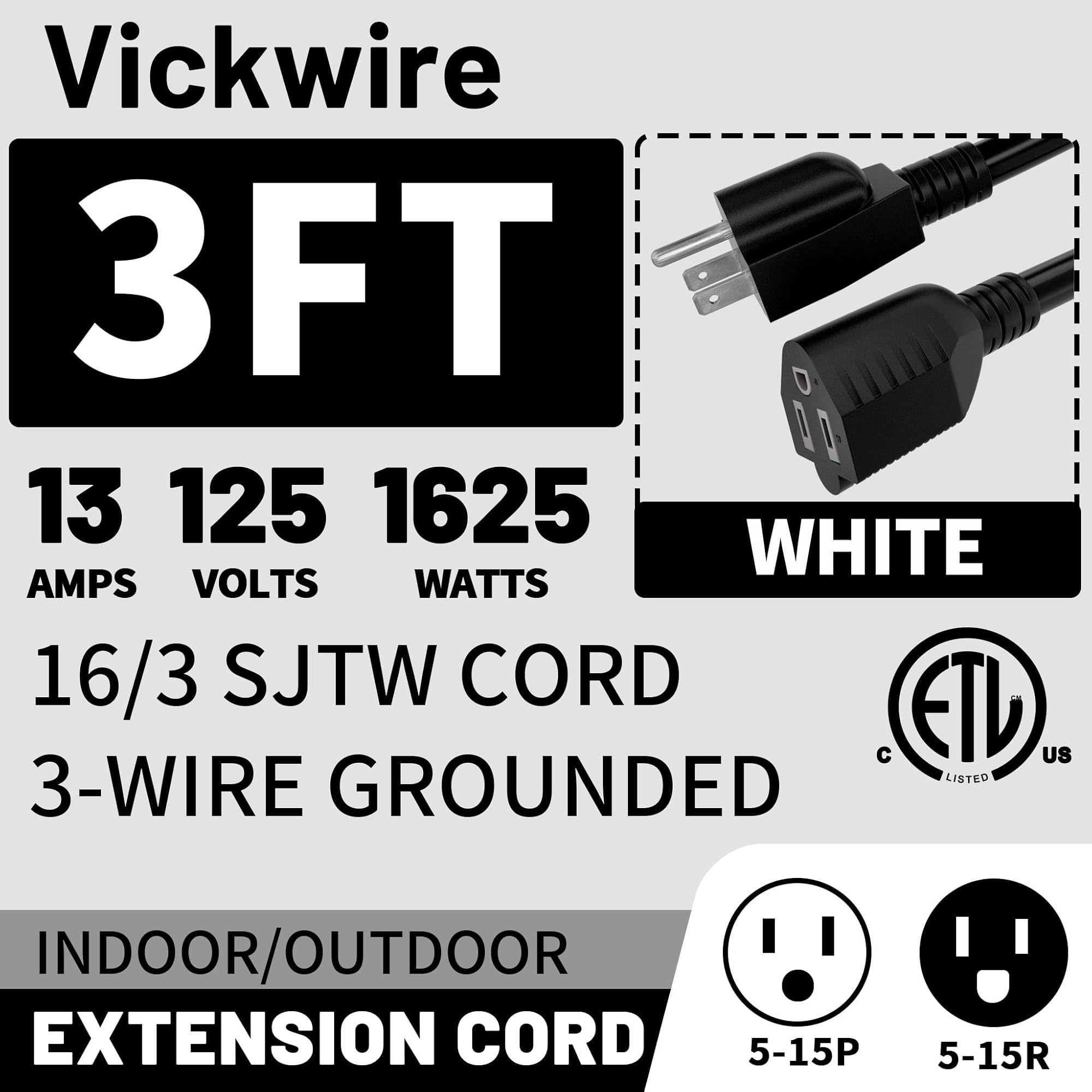 - רשום בתקן ETL: כבל מאריך 16 AWG באורך 3 רגל, 2 יחידות, 125 וולט, 13 אמפר, 1625 וואט, 5-15P/R, כבל מאריך 3 שיניים טווח טמפרטורות -58°F עד +158°F; כבל מאריך עמיד לשימוש מאושר בתקן ETL/cETL