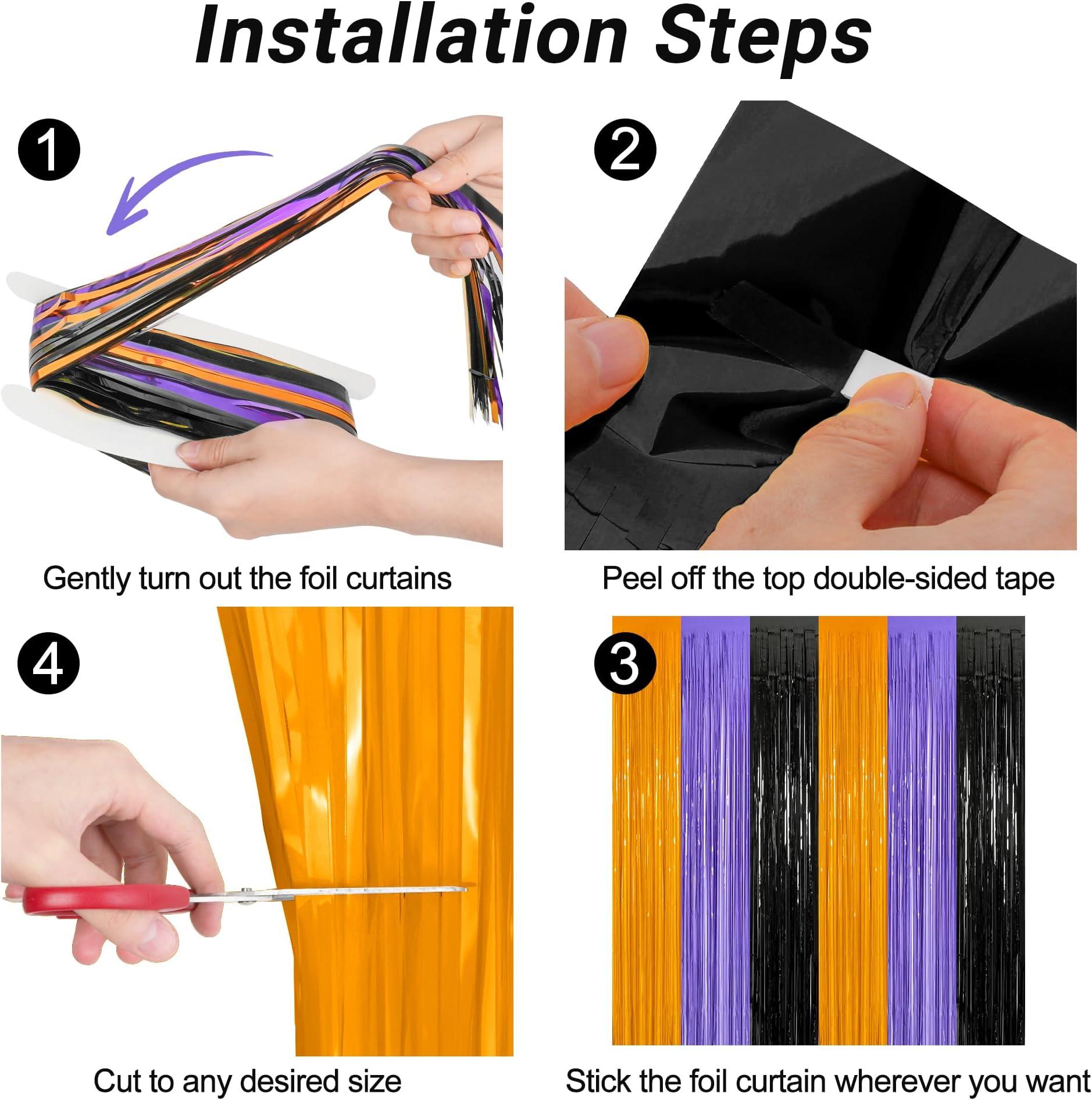 - קל להתקנה: וילונות פרנזים אלה של נייר כסף ליל כל הקדושים כוללים נייר דבק בחלק העליון, פשוט קלפו את הנייר והדביקו אותו במקום שאתם צריכים אותו, ואז חתכו אותו לגודל שאתם צריכים.