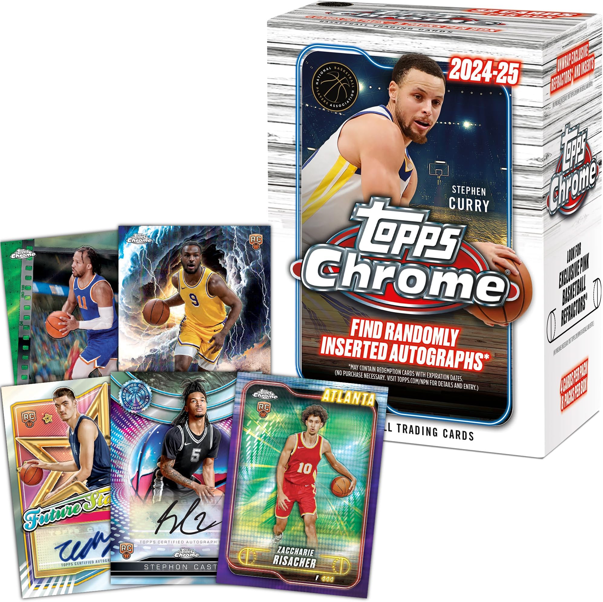 - כדורסל Topps Chrome חוזר לעונת 2024–25: כדורסל Topps Chrome חוזר לה המיוחל עם מגוון קלפי כדורסל מחודש שנבנו עבור האספן המודרני. קופסת קלפי כדורסל זו, הכוללת רשימה של 200 קלפים של שחקנים מתחילים, ותיקים ואגדות, משלבת את מורשת Topps עם הכישרונות המובילים של ימינו בצורה שרק Topps Chrome יכול.