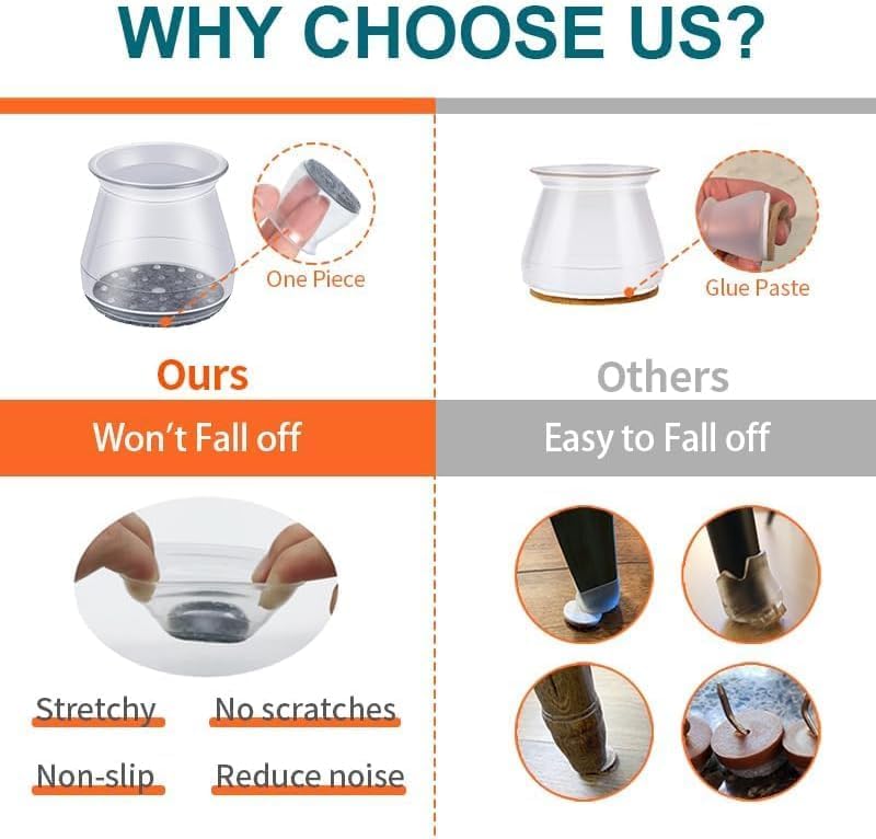 - 【תחתית הלבד לא נופלת】כיסויי רגלי הכיסא שלנו מסיליקון אינם משתמשים בג'ל ובציפורניים, ואנו משתמשים בטכנולוגיה מיוחדת כדי לשלב את הלבד והסיליקון לחתיכה אחת בלתי נפרדת. לעולם לא תצטרכו להתקשות עם דביקים או דבקים. החבילה כוללת 24 יחידות.