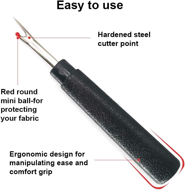 - בטוח ומאובטח: התפר שלנו עם כדור עגול אדום בקצה המזלג הקטן יותר להגנה על הבד. טוב לחיתוך וקריעת תפרים לא רצויים.