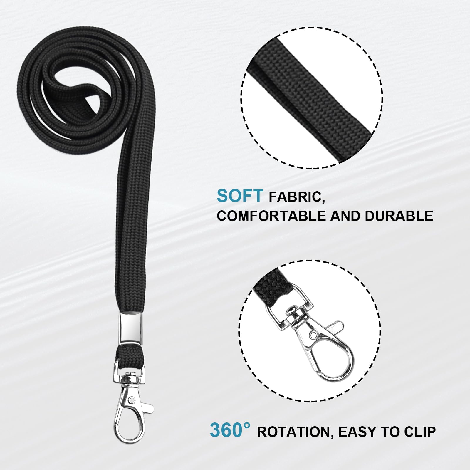 - החבילה כוללת: 3 יחידות מחזיקי תג זיהוי אנכיים שקופים ו-3 יחידות שרוך שחור עם וו מסתובב מנירוסטה