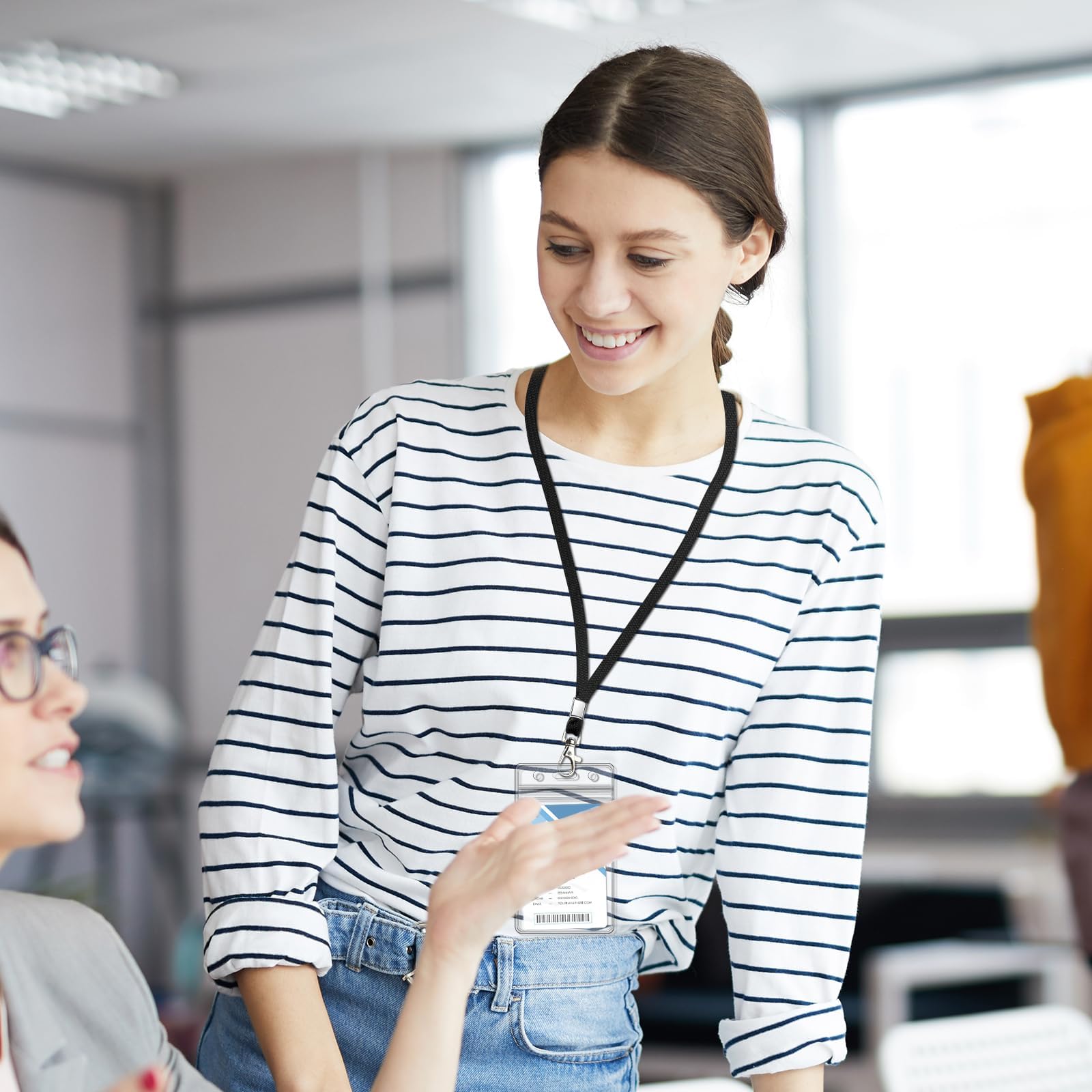 חבילה של 3 מחזיקי תג זיהוי שקופים עם שרוך שרוכי צוואר שחורים עם מחזיק תג זיהוי עמיד למים אנכי למשרד, בית ספר, נסיעות