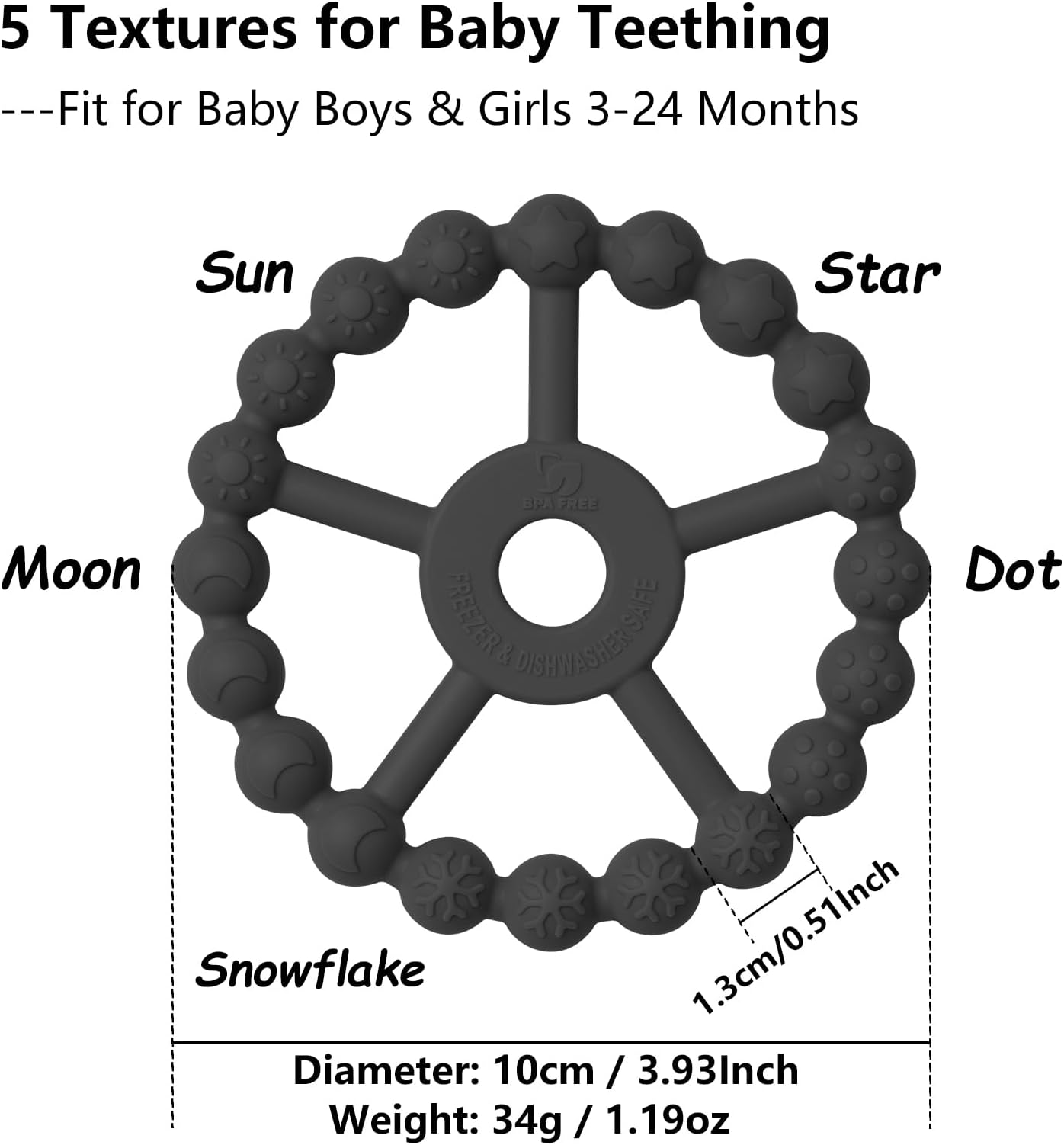 - 5 מרקמים לבקיעת שיניים: עיצוב צעצוע נשכן חמוד ומצחיק עם 5 מרקמים וזיפים שונים משני הצדדים לניקוי והרגעת חניכיים של התינוק. (שמש, כוכב, ירח, פתית שלג, נקודה). מתנות מושלמות לתינוק של מוצרים חיוניים לתינוקות שזה עתה נולדו.