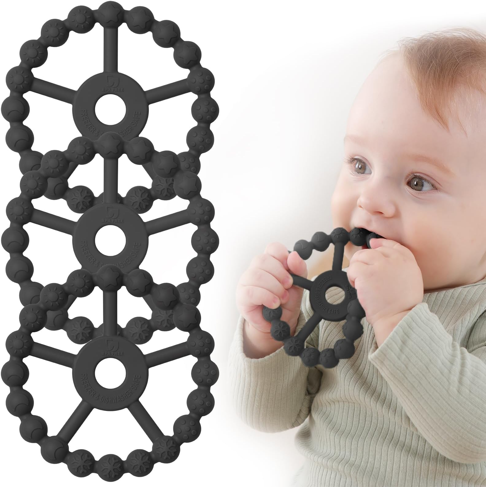 חבילה של 3 נשכנים, צעצועי סיליקון לנשכן לתינוקות מגיל 6 חודשים, נשכנים לתינוקות מגיל 6-12 חודשים, צעצוע קל לאחיזה להקלה על בקיעת שיניים לתינוקות