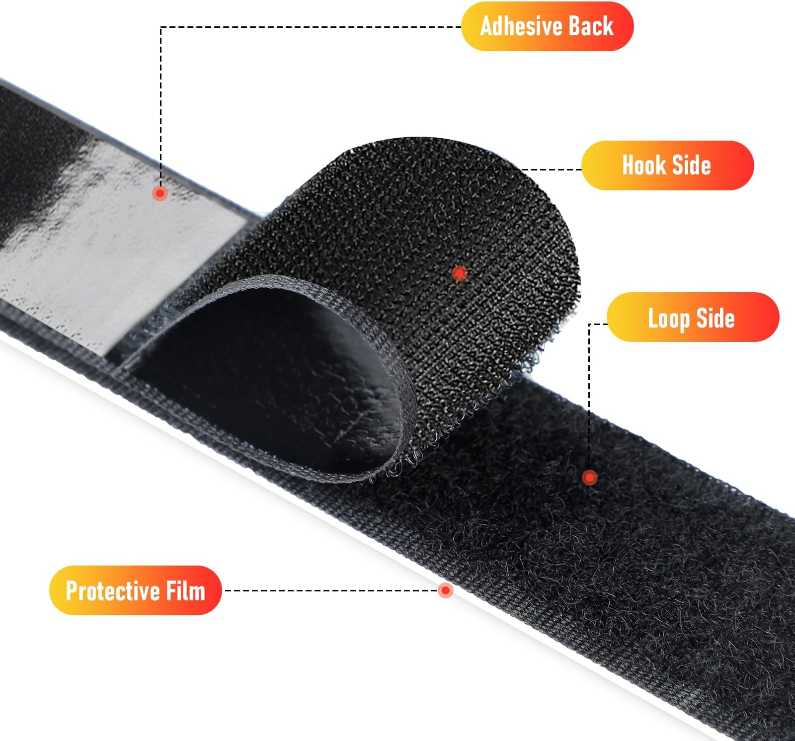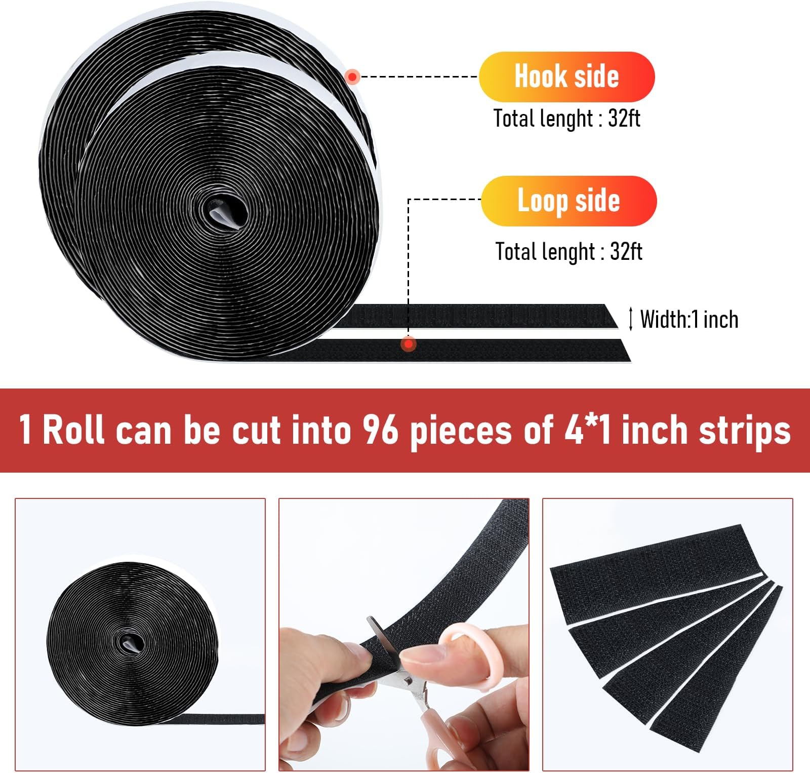- 【חיתוך חופשי】: סט אחד מכיל גליל אחד של סרט וו וגליל אחד של סרט לולאה (סט אחד 32 רגל * 1 אינץ' = 96 סטים של 4 אינץ' * 1 אינץ'). הקופסה מגיעה גם עם זוג מספריים וסרט מדידה נשלף למדידת חיתוך קלה.