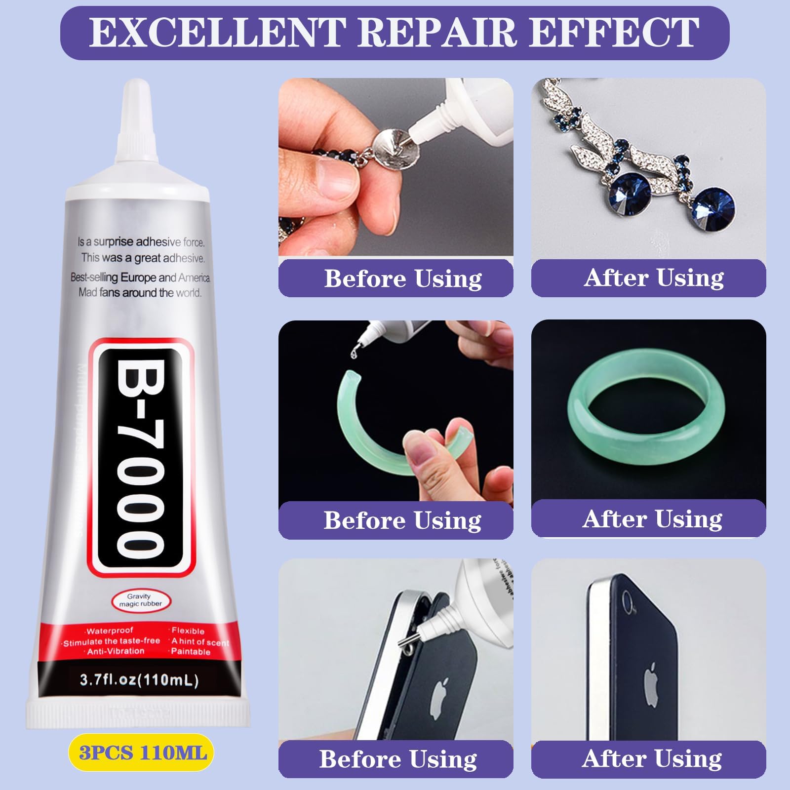 - 【דבק B7000 משודרג 110 מ"ל】דבק שקוף B-7000 לאבני חן יכול לבודד גז, נוזלים וזרימת אוויר, והוא שקוף, עמיד למים וגמיש במיוחד. דבק שקוף זה לא ישאיר כתמים לאחר השימוש. זה הופך אותו לנהדר לשחזור טלפונים ותכשיטים. יש לו אפקט משקם כזה שאף אחד לא ידע שהפריט שלכם שוחזר. אתם יכולים גם להשתמש בו ליצירת כל מיני עבודות יד.