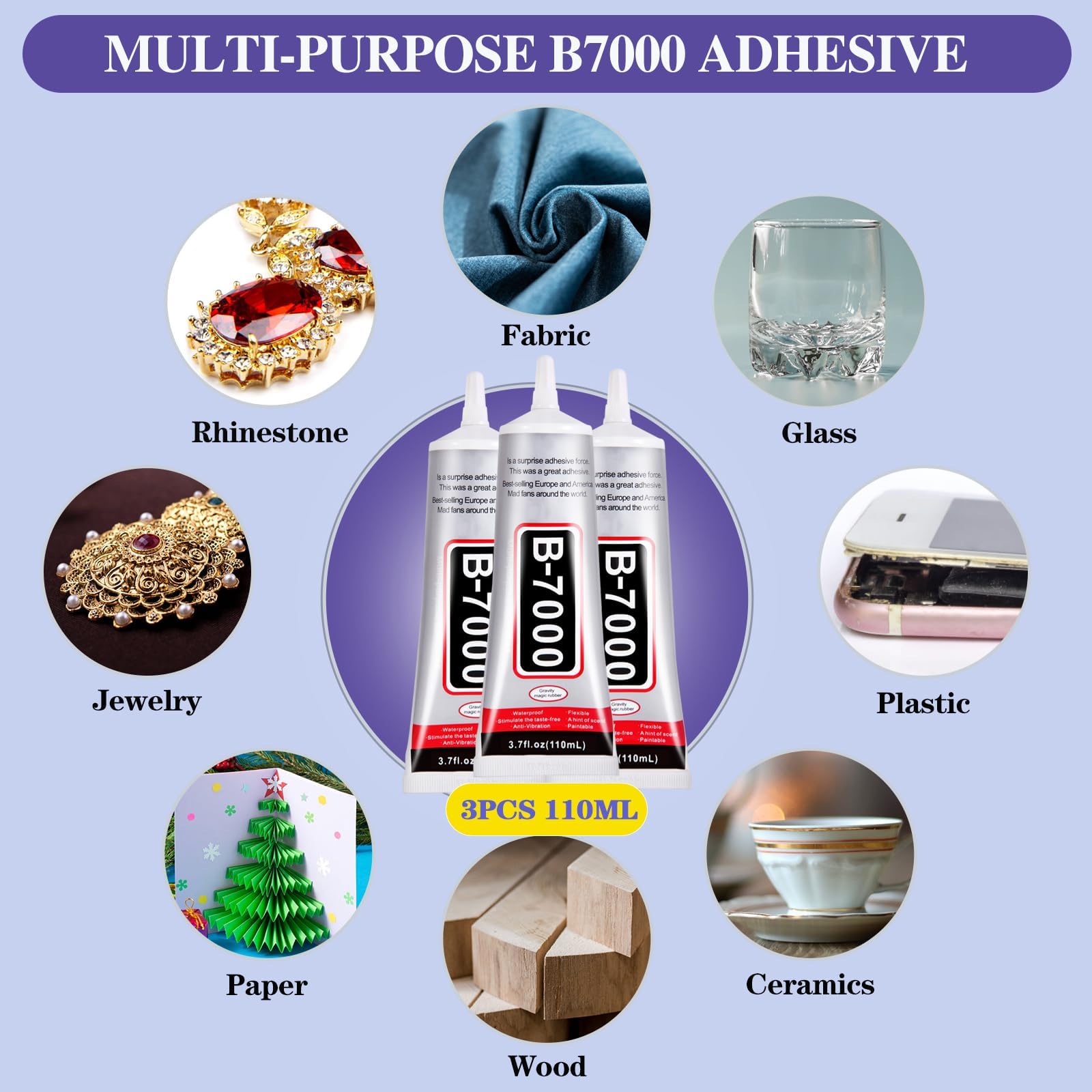 - 【דבק רב תכליתי B7000】דבק רב תכליתי זה עובד היטב על רוב המשטחים, אידיאלי לטלפונים סלולריים, עבודות אבני חן, איפור חתונה, הכנת תכשיטים, עבודות ציפורניים, אביזרי שיער, שמלות, נעליים, ארנקים, תיקים, כרטיסי ברכה, קישוטים, ספרים, טאבלטים, צעצועים, מתכת, זכוכית, גומי, סיבים, נייר, קרמיקה, עץ, בד, טקסטיל, ניילון, PVC, עור וחומרים אחרים.