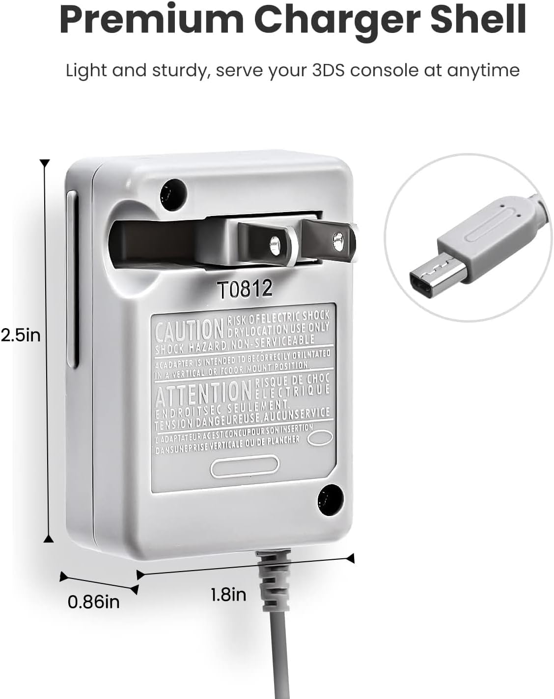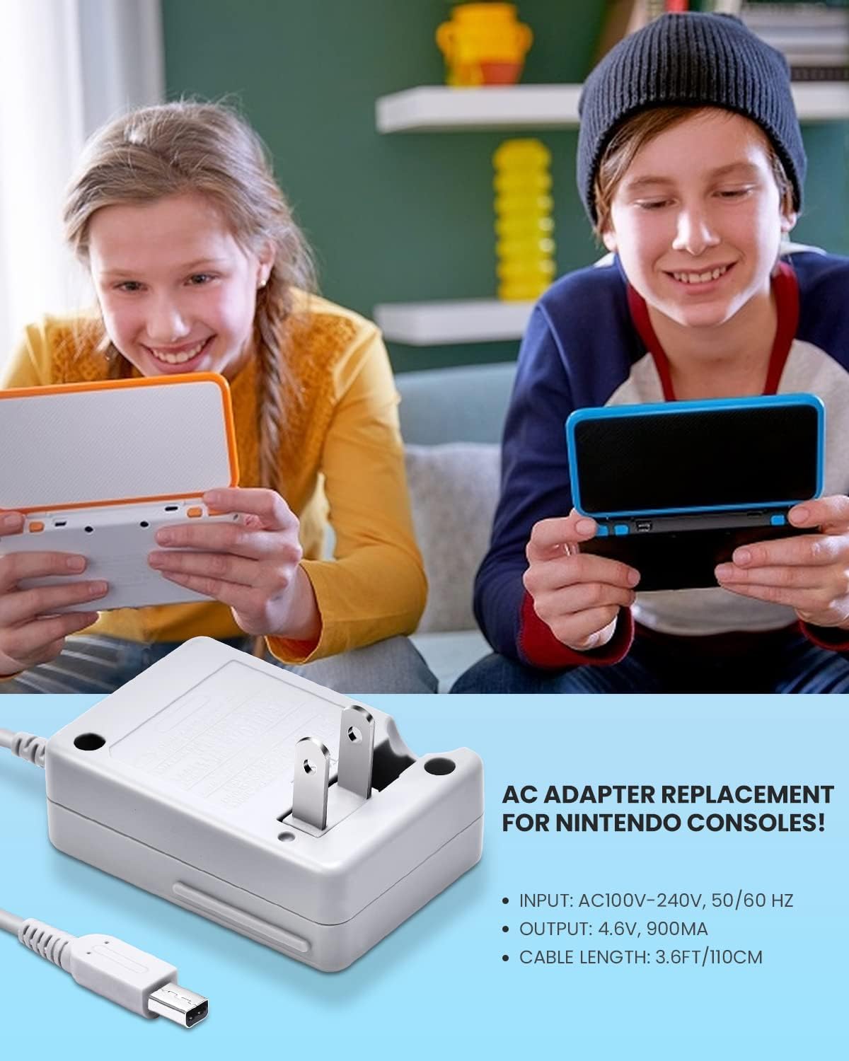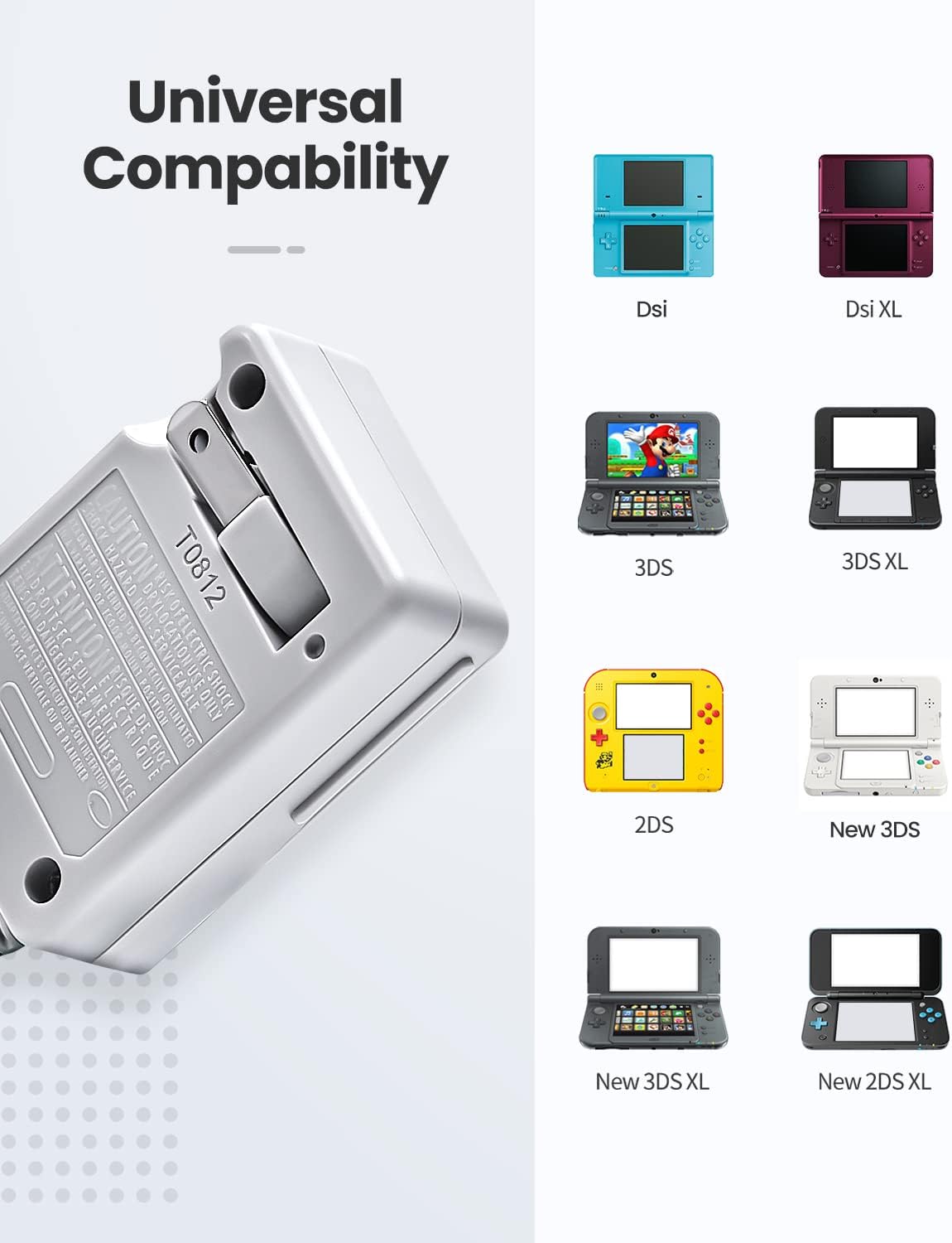 מטען 3DS, מטען VOYEE 3DS תואם לנינטנדו 3DS/DSi/DSi XL/2DS/2DS XL/New 3DS מתאם תקע קיר 100-240V