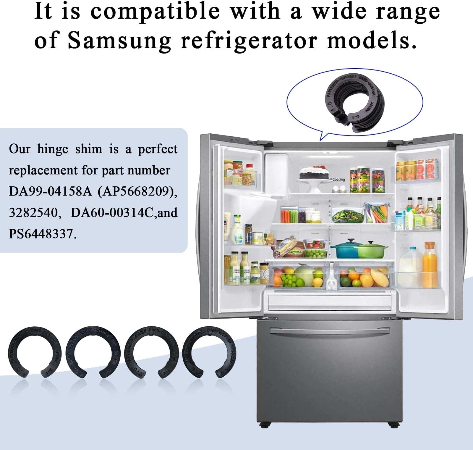 8 יחידות משודרגות DA99-04158A ציר שים ערכות כוונון גובה דלת מקרר, חלקי חילוף עבור Samsung 3282540, DA60-00314C, PS6448337 AP5668209, 4 עוביים שונים