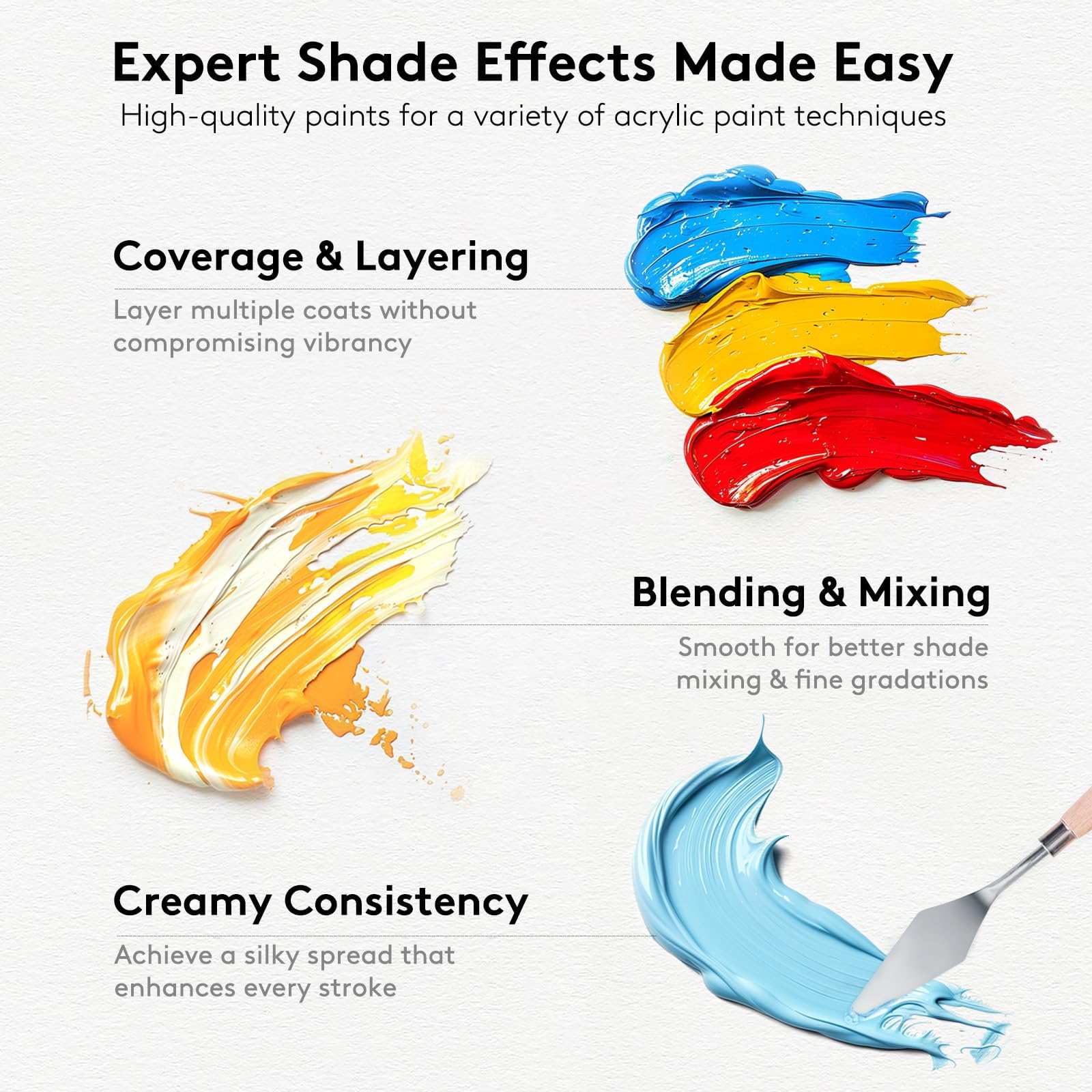 - צבעים עזים, ניקוי בטוח וקל: טבלו את עצמכם בעולם של פיגמנטים עשירים ותוססים ללא דאגות עם סט צבעי האקריליק שלנו. הוא אינו רעיל ועומד בתקני הבטיחות ASTM D4236. חוו ערבוב חלק וייבוש מהיר. הנוסחה שלנו לייבוש מהיר מאפשרת מריחת שכבות מיידית וחקירה יצירתית. כשמגיע הזמן לסדר, שטיפה פשוטה עם סבון ומים מנקה בקלות את סביבת העבודה שלכם.