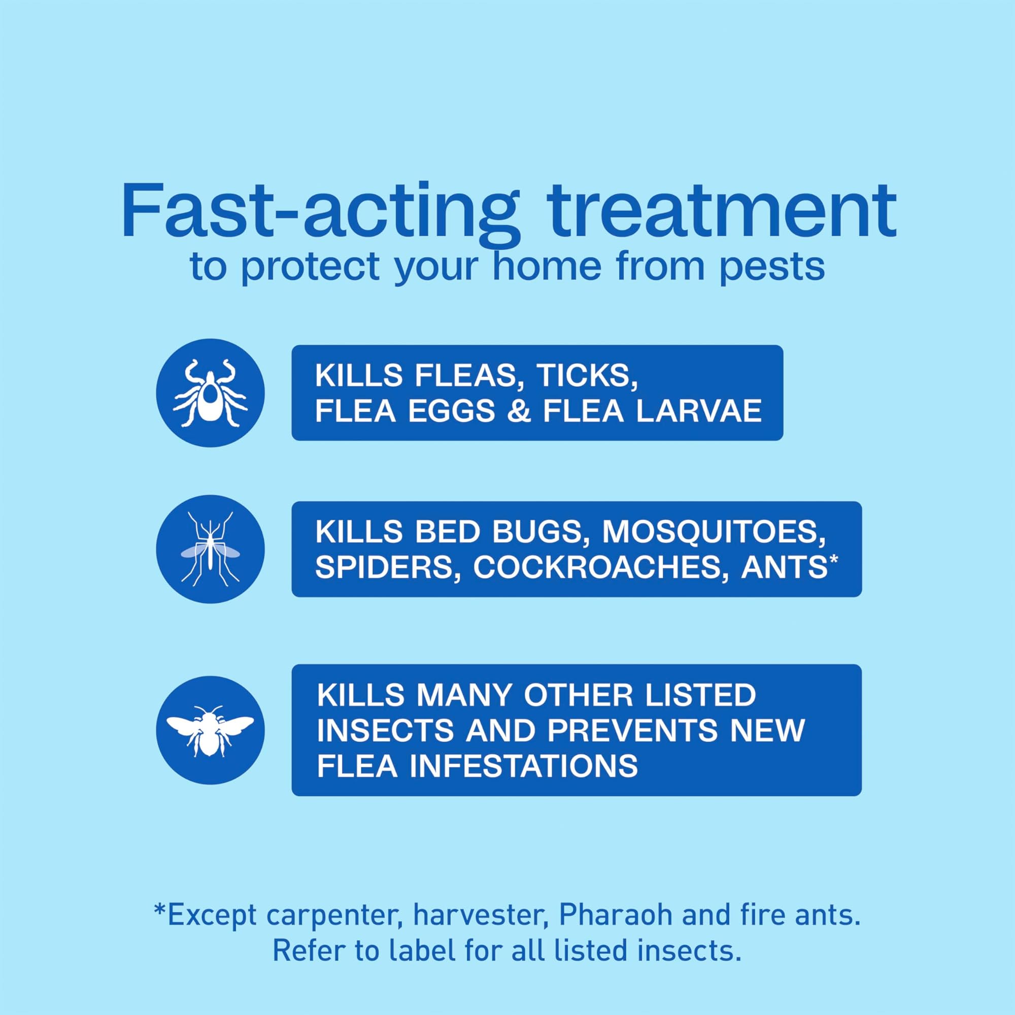 תרסיס אדמס נגד פרעושים וקרציות לבית, הורג פרעושים, ביצי פרעושים, זחלי פרעושים, פשפשים, קרציות, נמלים (למעט נמלי נגרות, נמלי קוצר, נמלי פרעה ונמלי אש), ג'וקים, עכבישים ויתושים בבית, 24 אונקיות נוזל