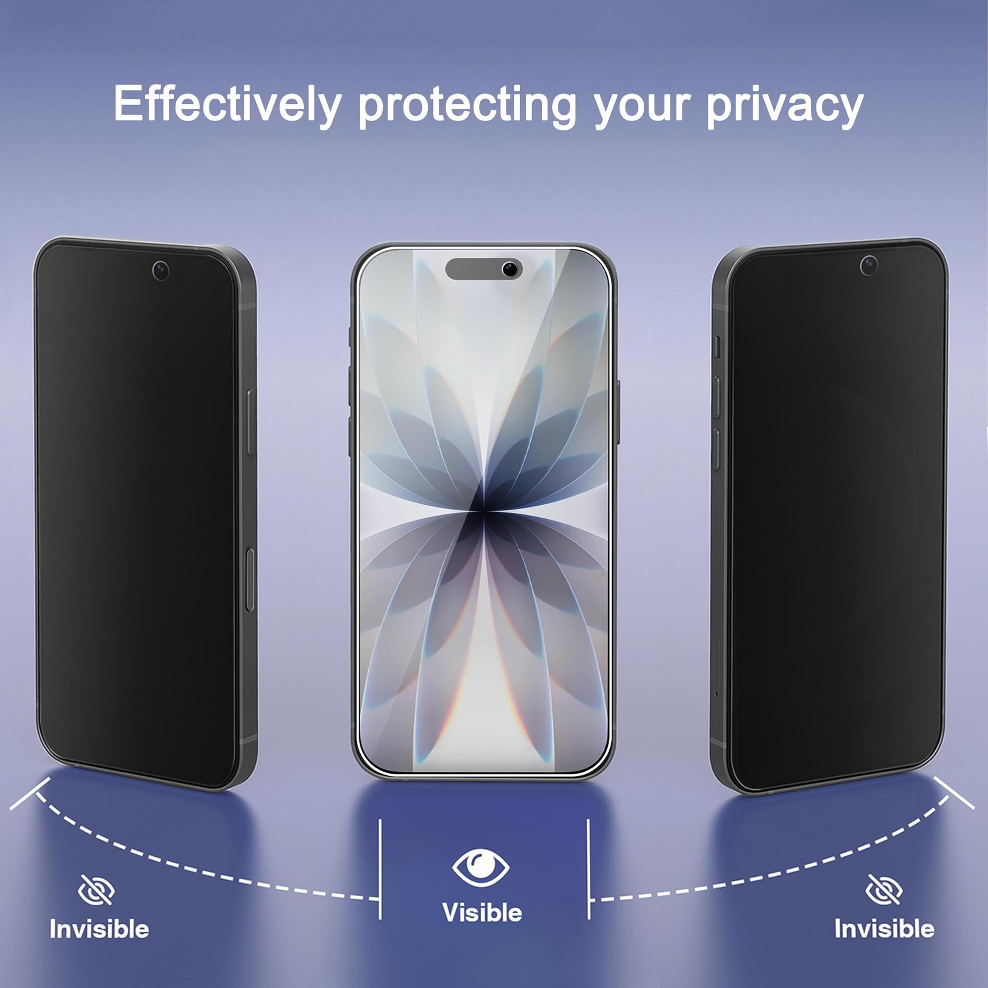 מגני מסך פרטיות של Ailun לאייפון 17 [6.3 אינץ'] עם מסגרת התקנה, כיסוי זכוכית מחוסמת נגד ריגול, נגד שריטות [לא מתאים לאייפון 17 פרו/17 פרו מקס/אייפון אייר]