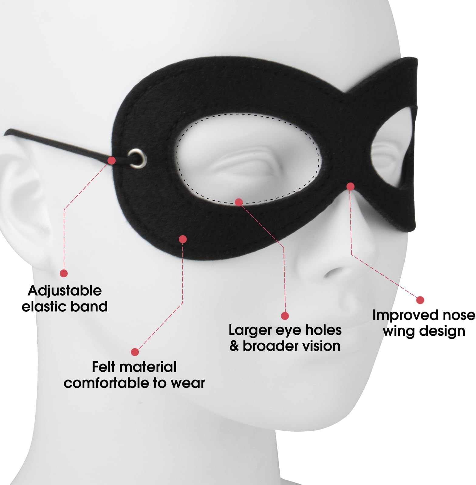 - חורי עיניים משודרגים: בהשוואה למסכות עיניים אחרות לתחפושות, מסכות העיניים השחורות שלנו מעוצבות עם חורי עיניים גדולים יותר להרחבת הראייה.