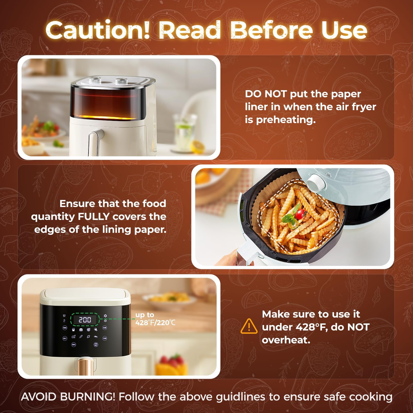 - 【חיסכון בזמן וניקוי קל】נייר הטיגון באוויר דומים לקערה מרובעת, שיכול להרחיק ביעילות משאריות מזון מהטיגון ולהגן על צידי הטיגון. שמרו על תחתית סל הטיגון נקייה והפכו את הניקוי לקליל - פשוט קלפו והשליכו לאחר הבישול.