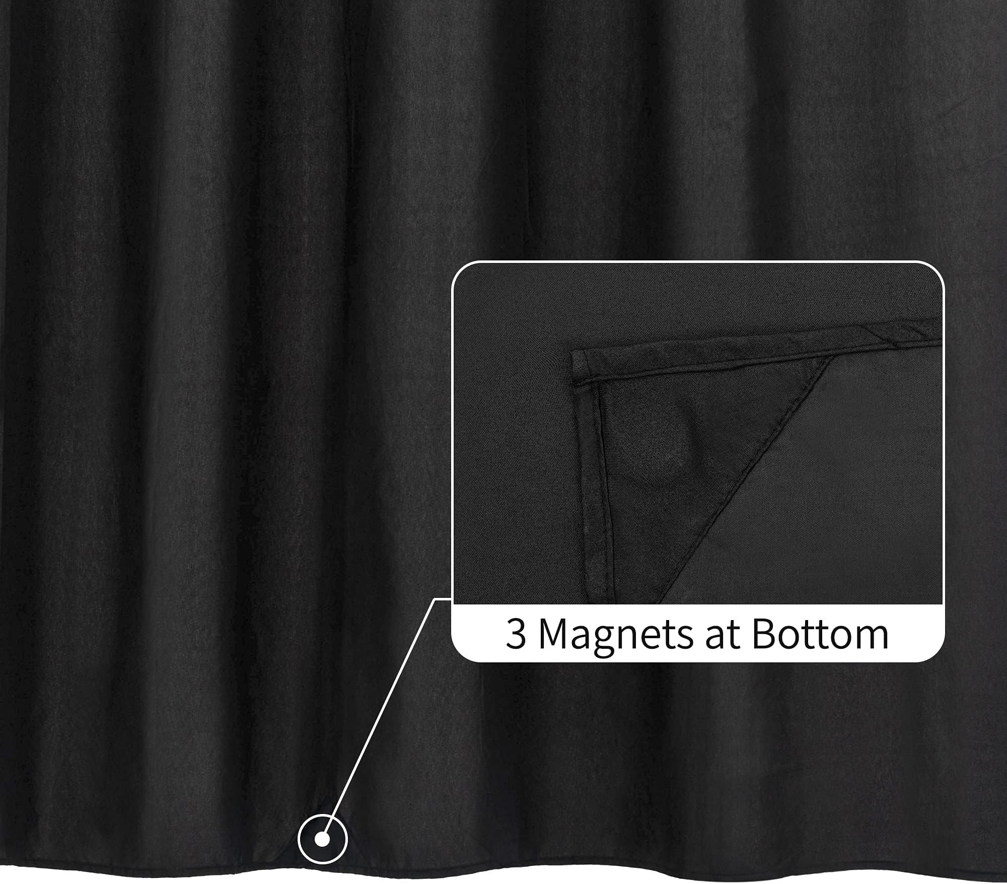 - שוליים משוקללים במגנט: 3 מגנטים בתחתית וילון המקלחת מבד שחור להוספת משקולות נוספות, עוזרים לשמור על בטנת וילון המקלחת מבד זה במקומה ולהפחית גושים.