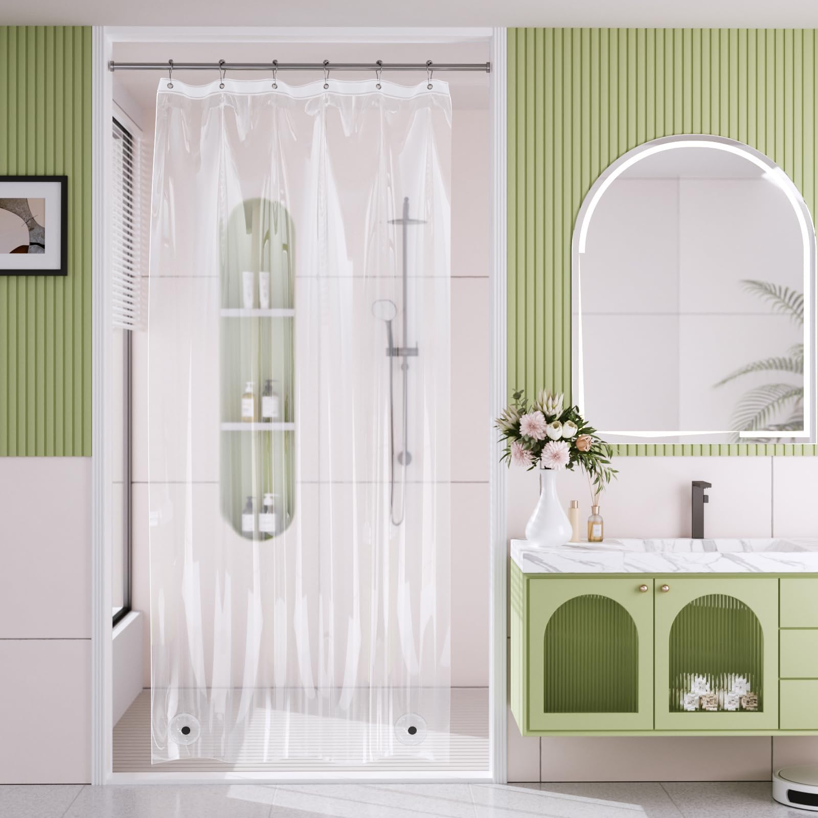 וילון מקלחת AmazerBath, וילון מקלחת שקוף 36x78, וילון מקלחת ארוך ועמיד למים מפלסטיק, וילון מקלחת קל משקל PEVA עם 2 מגנטים ו-6 לולאות מתכת עמידות בפני חלודה