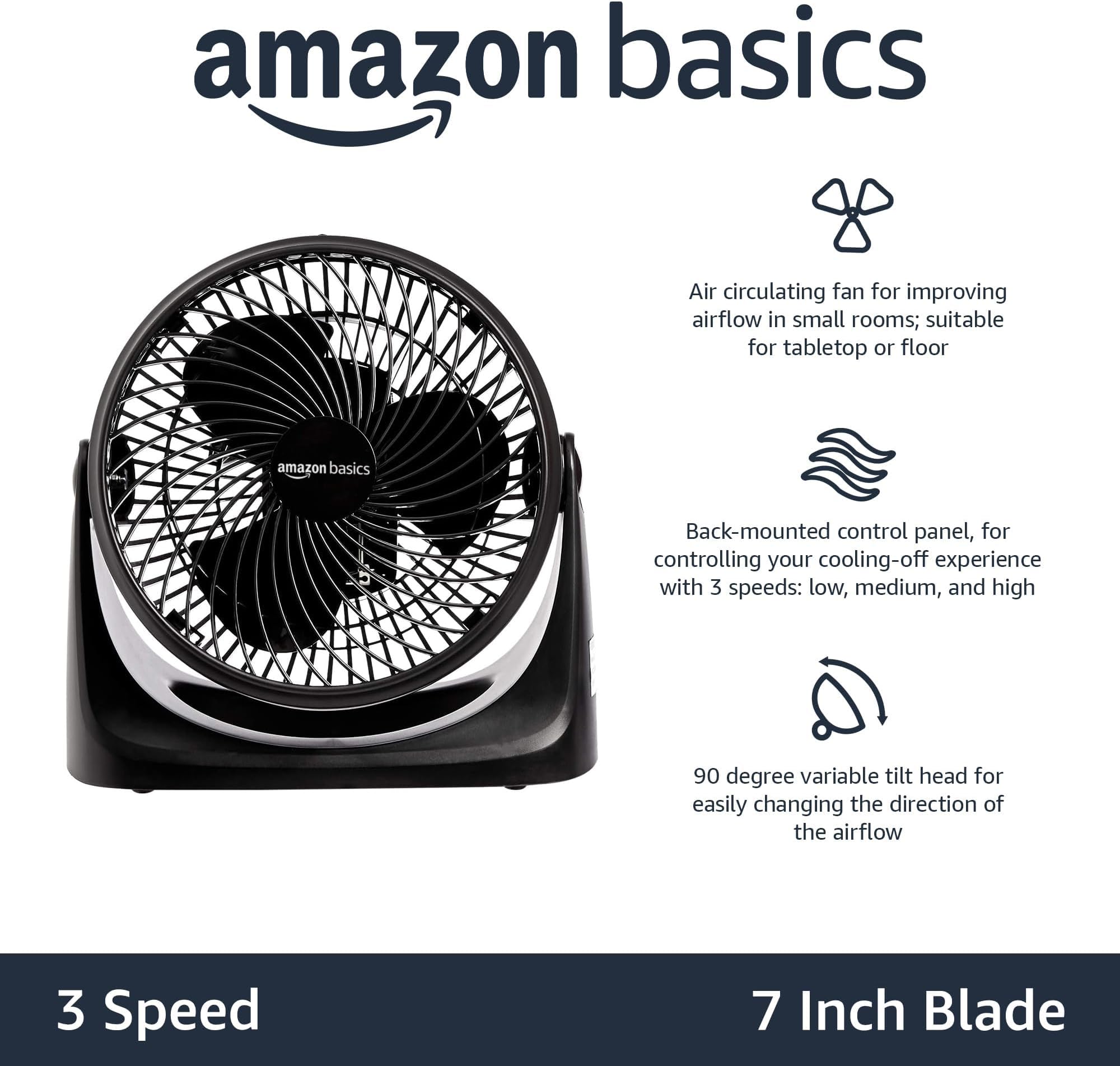 מאוורר סירקולטור של Amazon Basics, מאוורר שולחני לחדר שינה, בית ומשרד, עם ראש הטיה של 90 מעלות, 3 הגדרות מהירות, קל משקל (3 פאונד), 35 וואט, שחור, רוחב 11.1 אינץ' x עומק 6.3 אינץ' x גובה 10.9 אינץ'