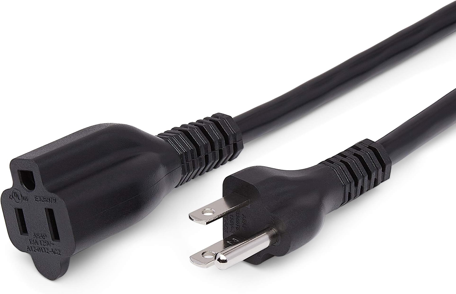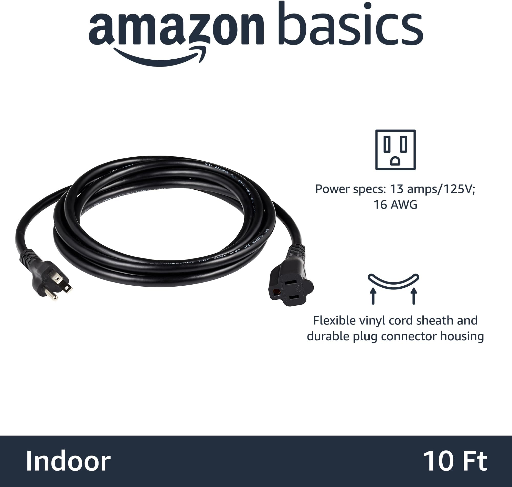 כבל מאריך Amazon Basics באורך 10 רגל - 13 אמפר, 125 וולט - חבילה של 2, שחור