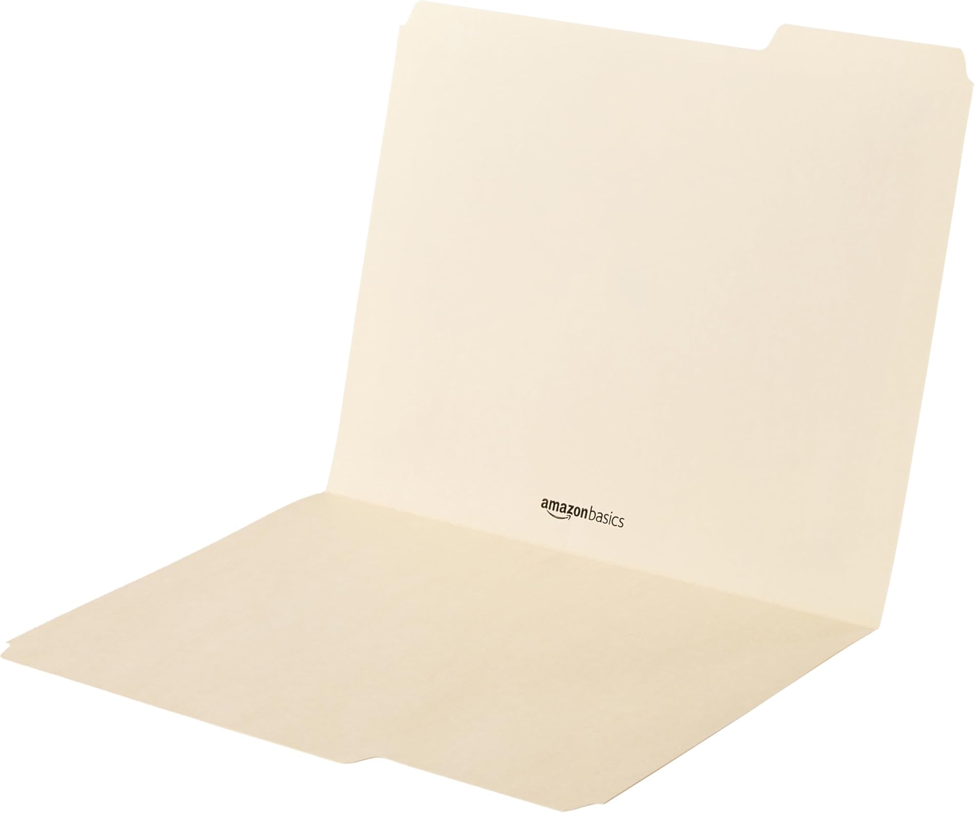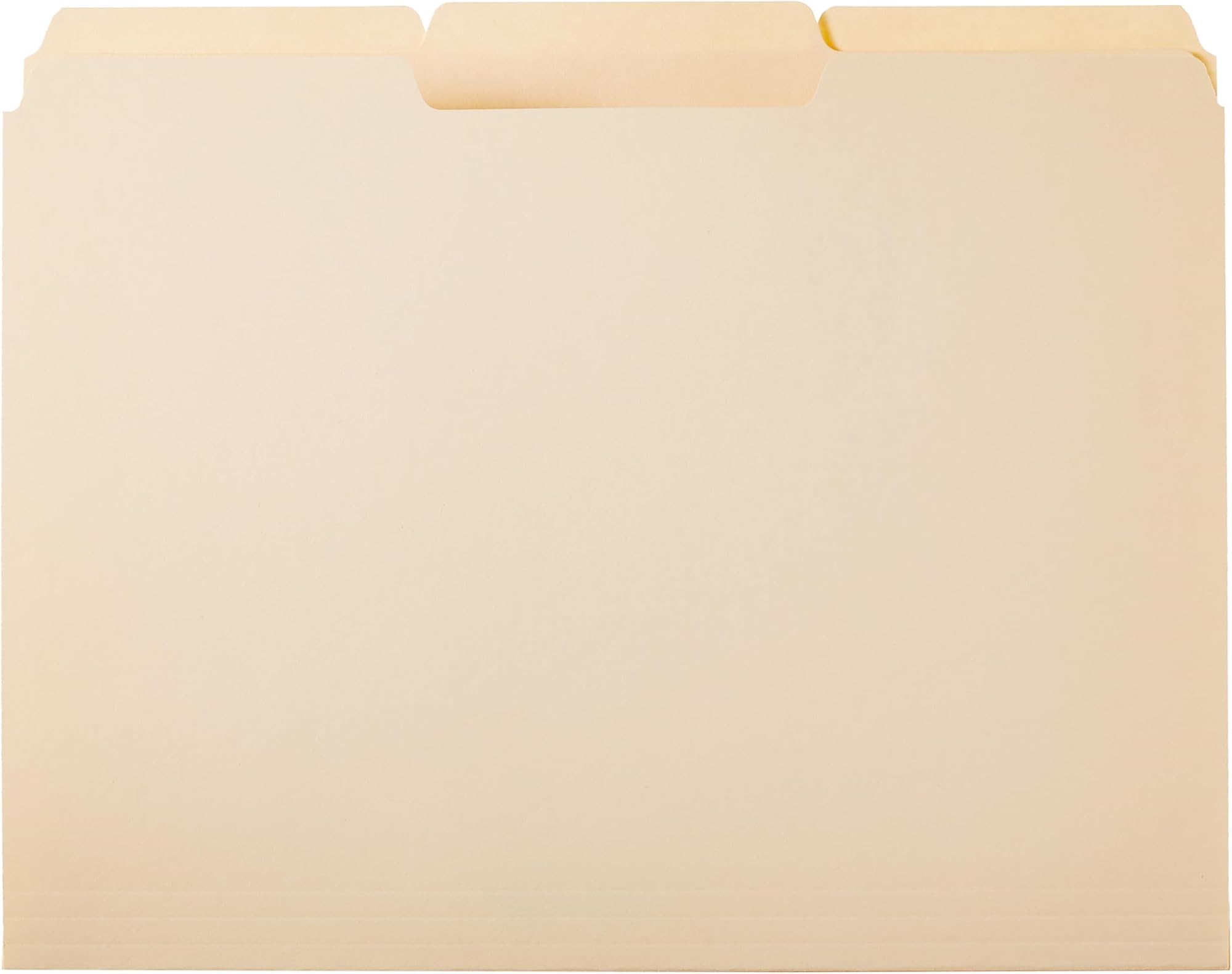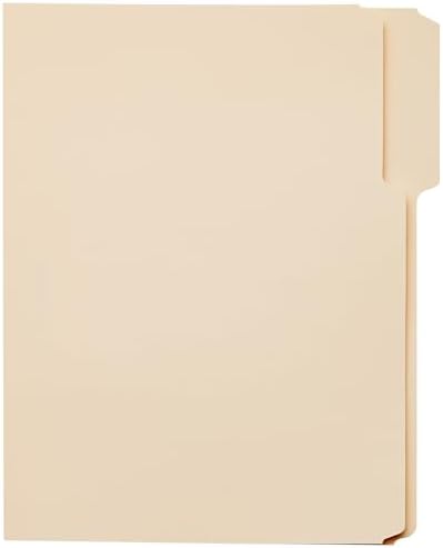 תיקיות תיוק של Amazon Basics עם לשוניות לתיוק, לשונית חתוכה ב-1/3, מיקומים שונים, 8.5x11 אינץ', גודל Letter, Manila, חבילה של 100