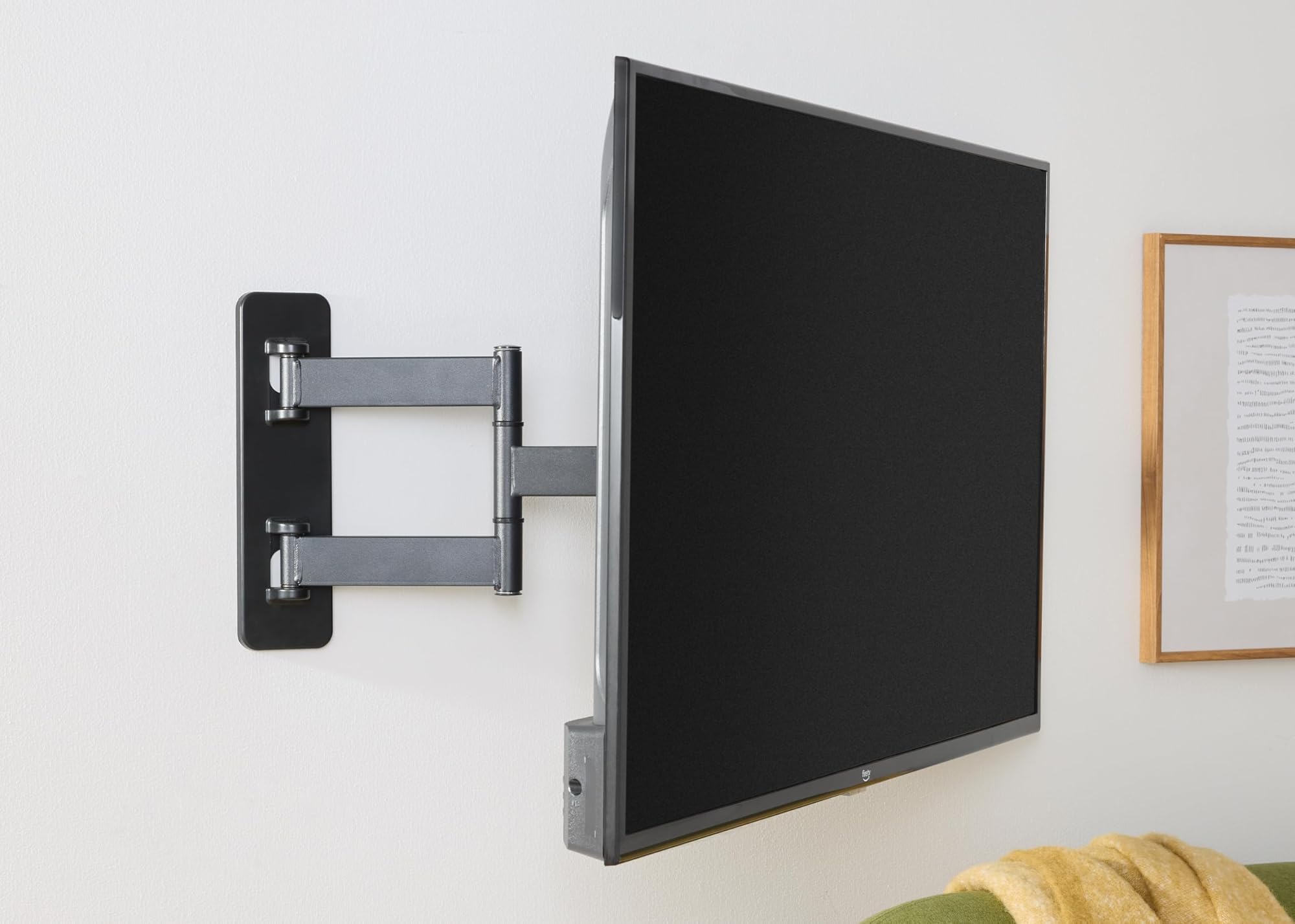 מתקן קיר לטלוויזיה בעל תנועה מלאה של Amazon Basics, עם סיבוב והטיה, לטלוויזיות 26" עד 55" ומסכים שטוחים עד 36 ק"ג, תואם VESA, שחור