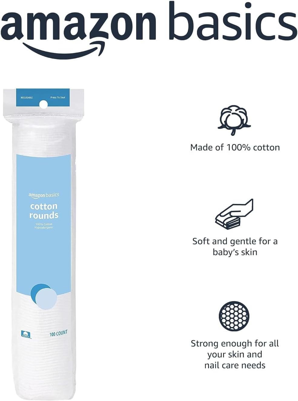 כדורי כותנה בסיסיים של Amazon Basics, 100 יחידות, חבילה של 1 (לשעבר Solimo), 100% כותנה והיפואלרגנית. רכים אך חזקים ועמידים לכל צרכי טיפוח העור והציפורניים שלך.