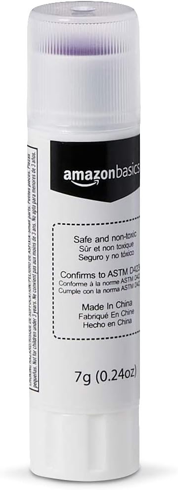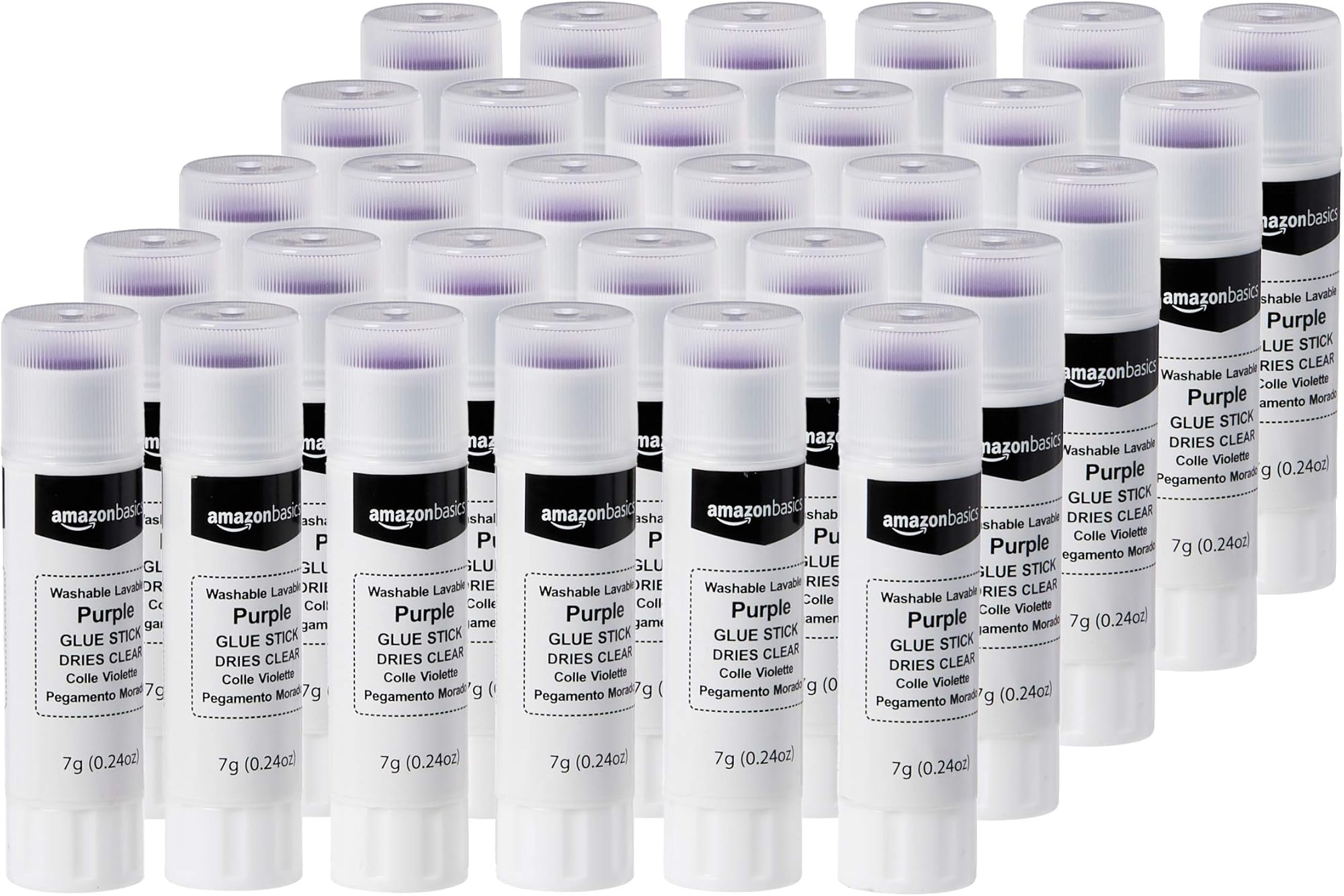 מקלות דבק בית ספר סגולים רחיצים של Amazon Basics, מתייבש שקוף, מקל 0.24 אונקיות, חבילה של 30