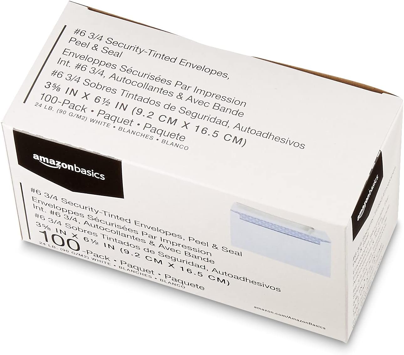 מעטפת דיוור Amazon Basics Security עם אטימה עצמית, לבנה, 6 3/4, חבילה של 100