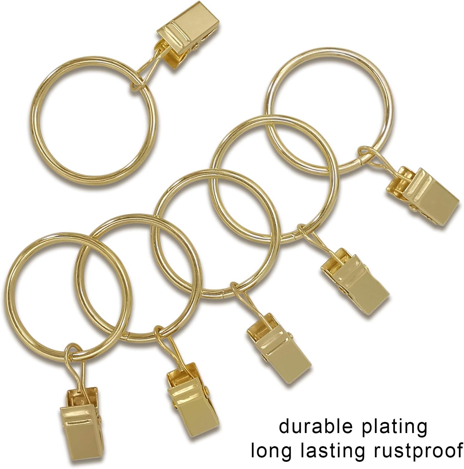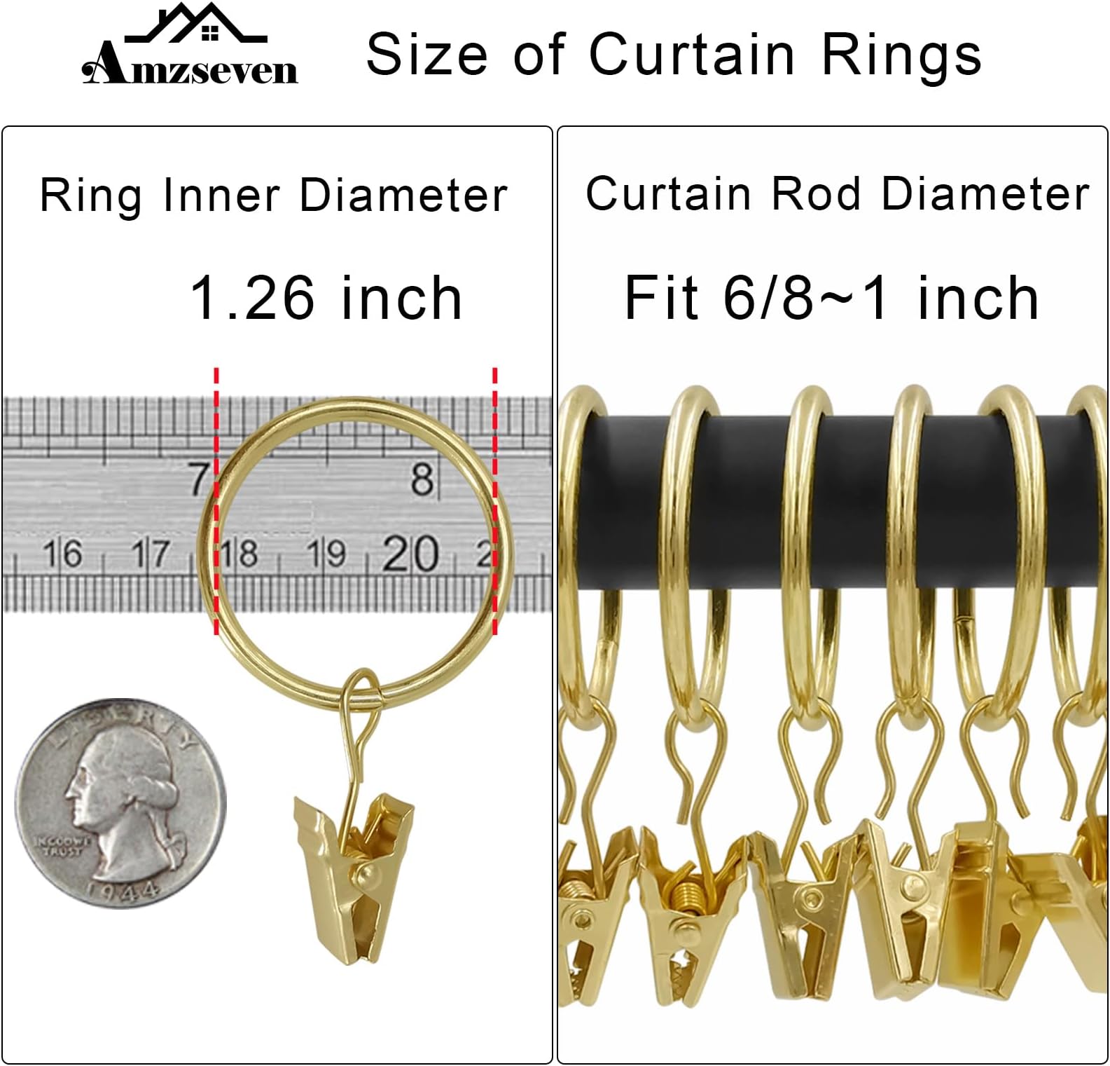 AMZSEVEN 40 טבעות וילונות עם קליפסים, קליפסים לוילונות עם טבעות, טבעות לוילונות בקוטר פנימי 1.26 אינץ', מתאים למוט וילונות עד 1 אינץ', צבע זהב