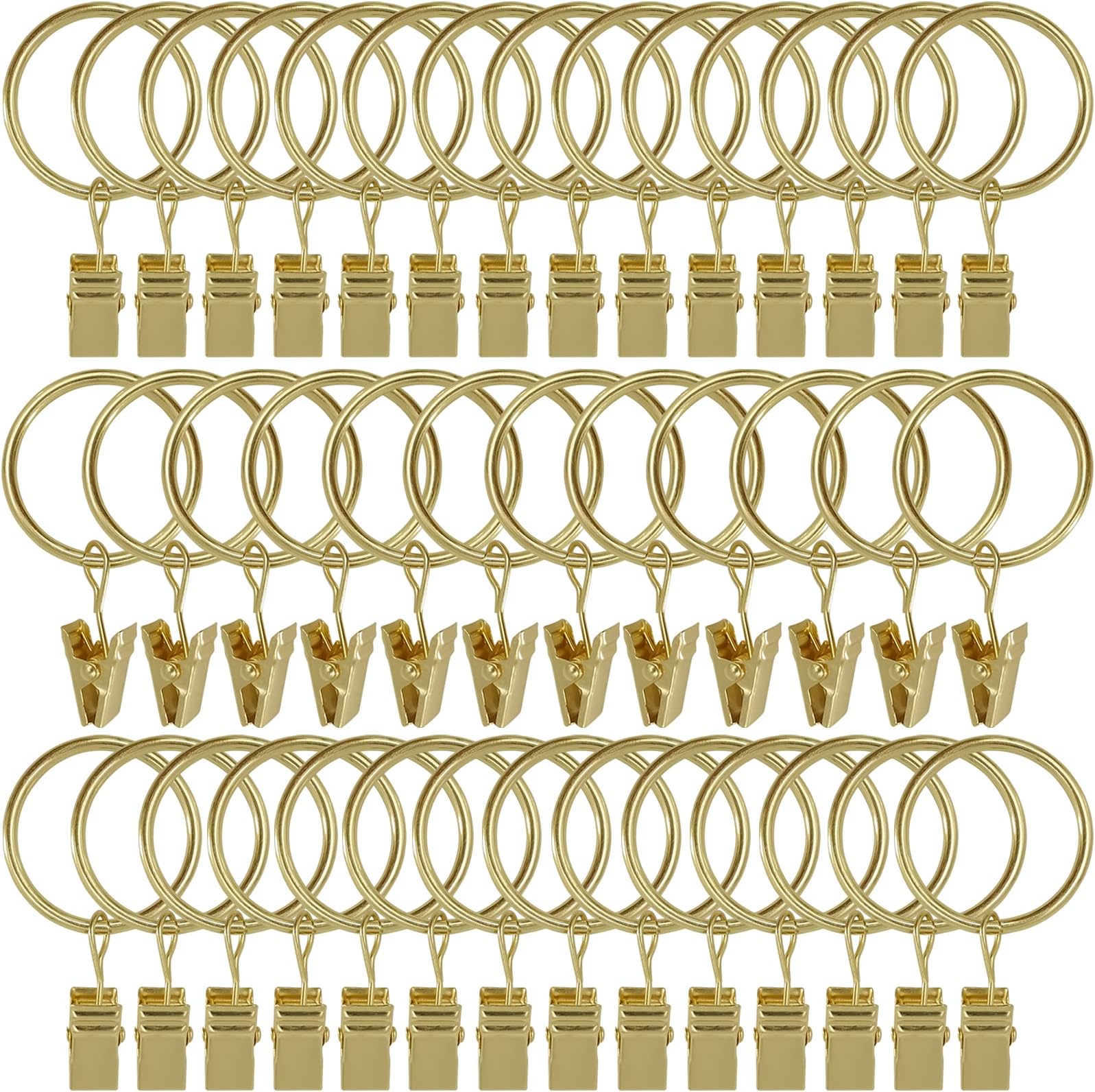 החבילה כוללת: > סט של 40 קליפסים דקורטיביים ממתכת בצבע זהב לוילונות, טבעות לוילונות, קוטר פנימי 1.26 אינץ'