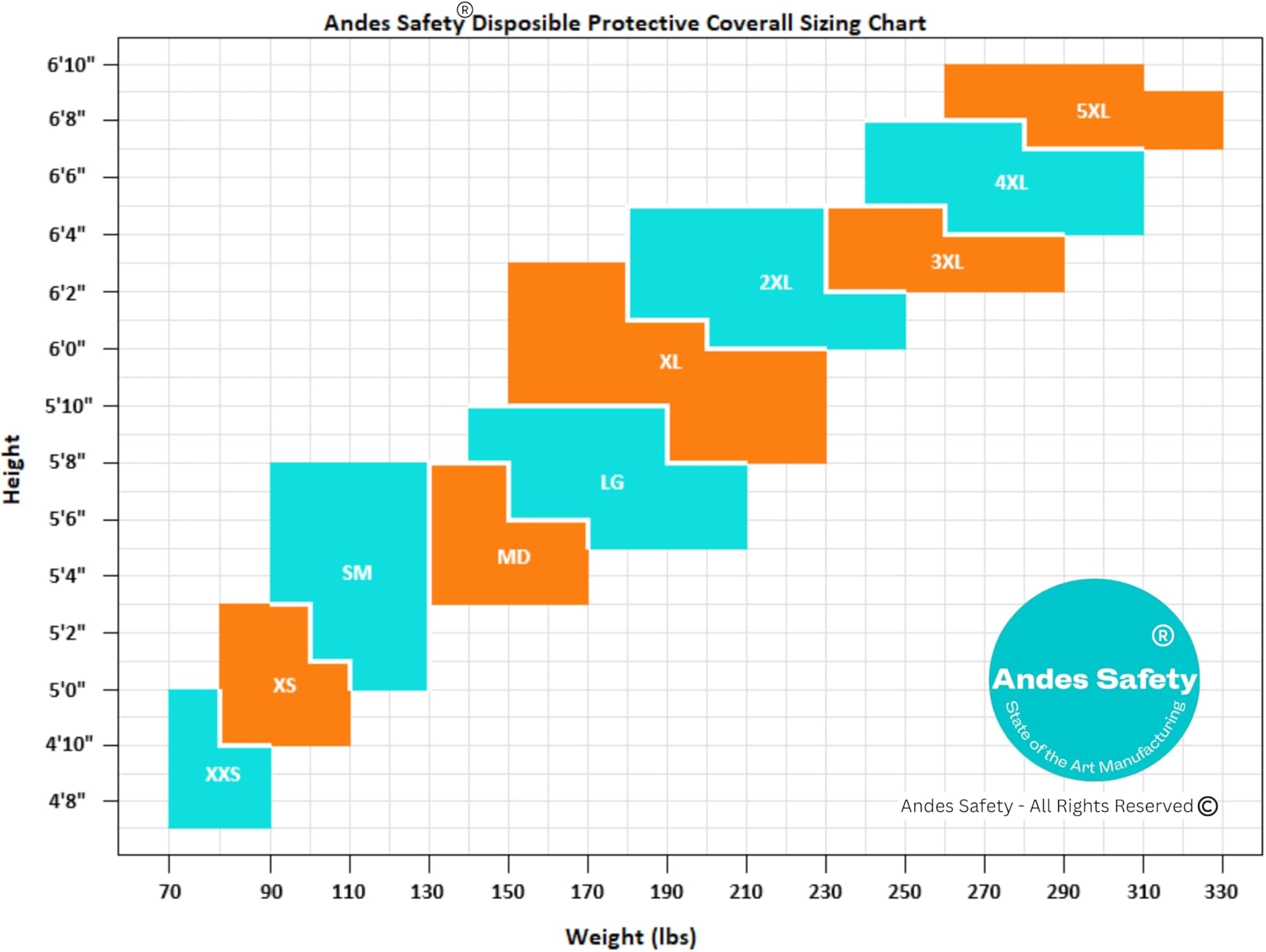 חליפות בטיחות לחומרים מסוכנים של Andes, חליפות צבע חד פעמיות לעומס מלא, סרבל עם ברדס, גומי לפרקי כף היד והקרסוליים, זמין ב-10 מידות, (בינוני)