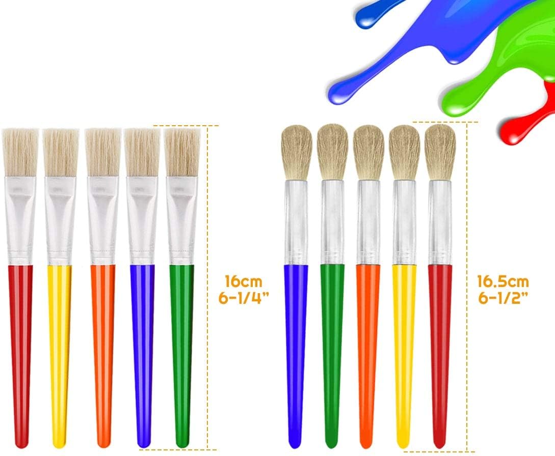 - 【סט מברשות צבע לילדים】מברשות הצבע של Anezus לילדים מגיעות עם 10 מברשות צבע, 5 מברשות עגולות ו-5 מברשות צבע שטוחות עם ידיות צבעוניות, טובות לאמנים צעירים לחקור את היצירתיות שלהם בציור וביצירה.