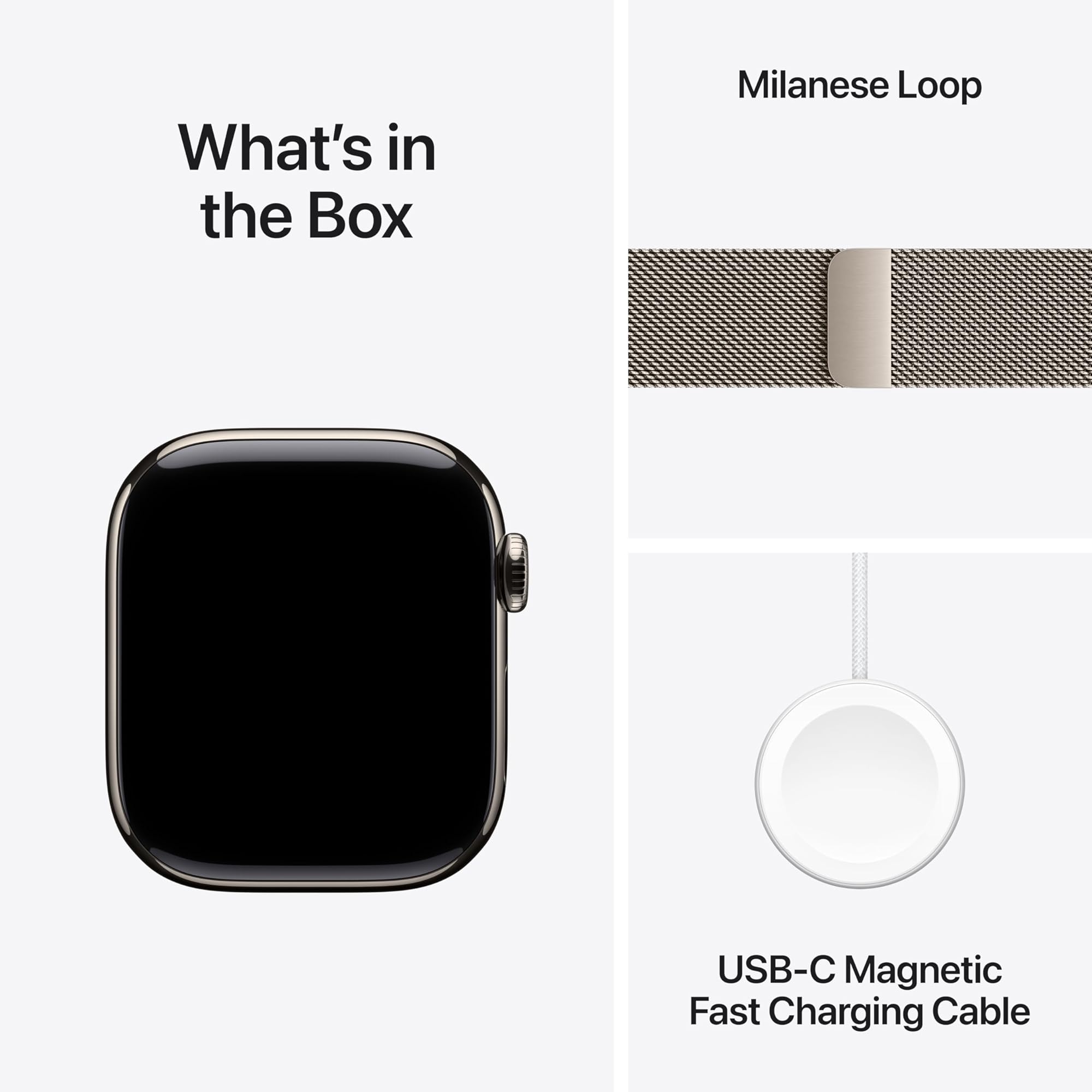 Apple Watch Series 10 [GPS + Cellular 42mm case] Smartwatch with Natural Titanium Case with Natural Milanese Loop. Fitness Tracker, ECG App, Always-On Retina Display, Carbon Neutral