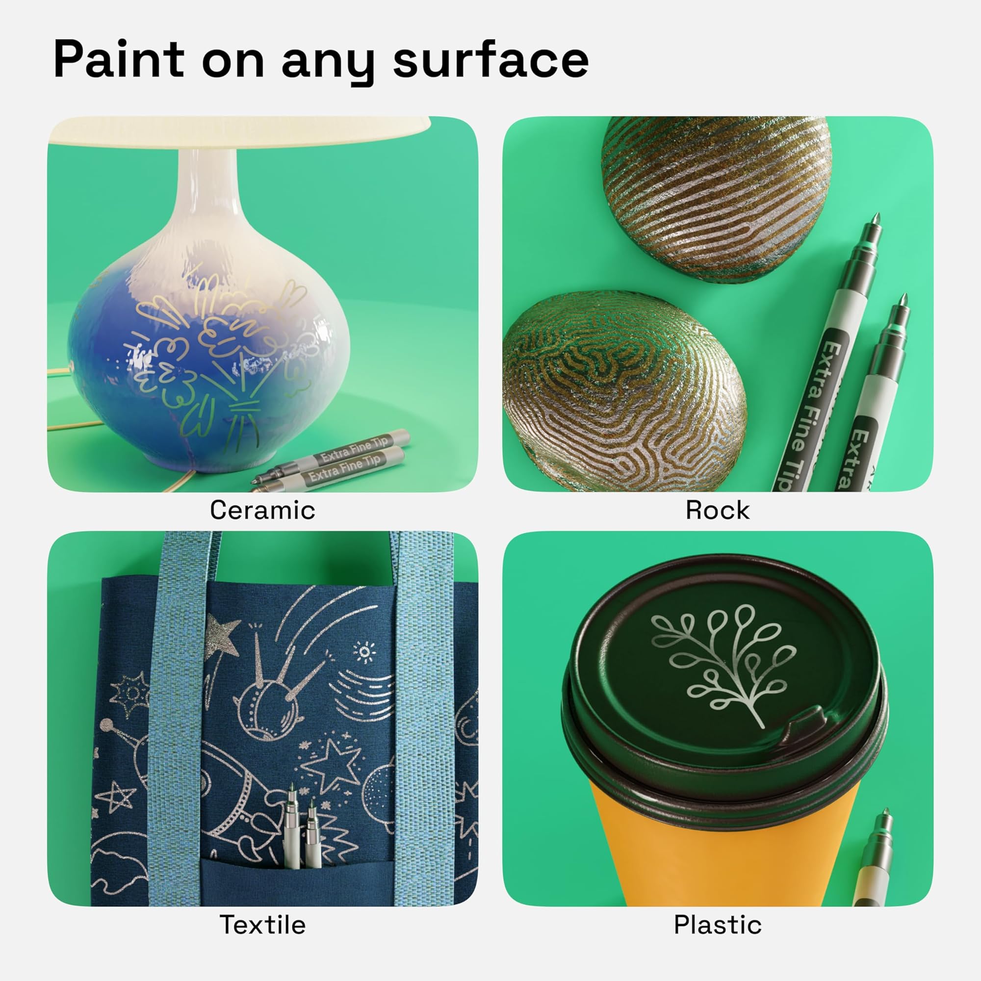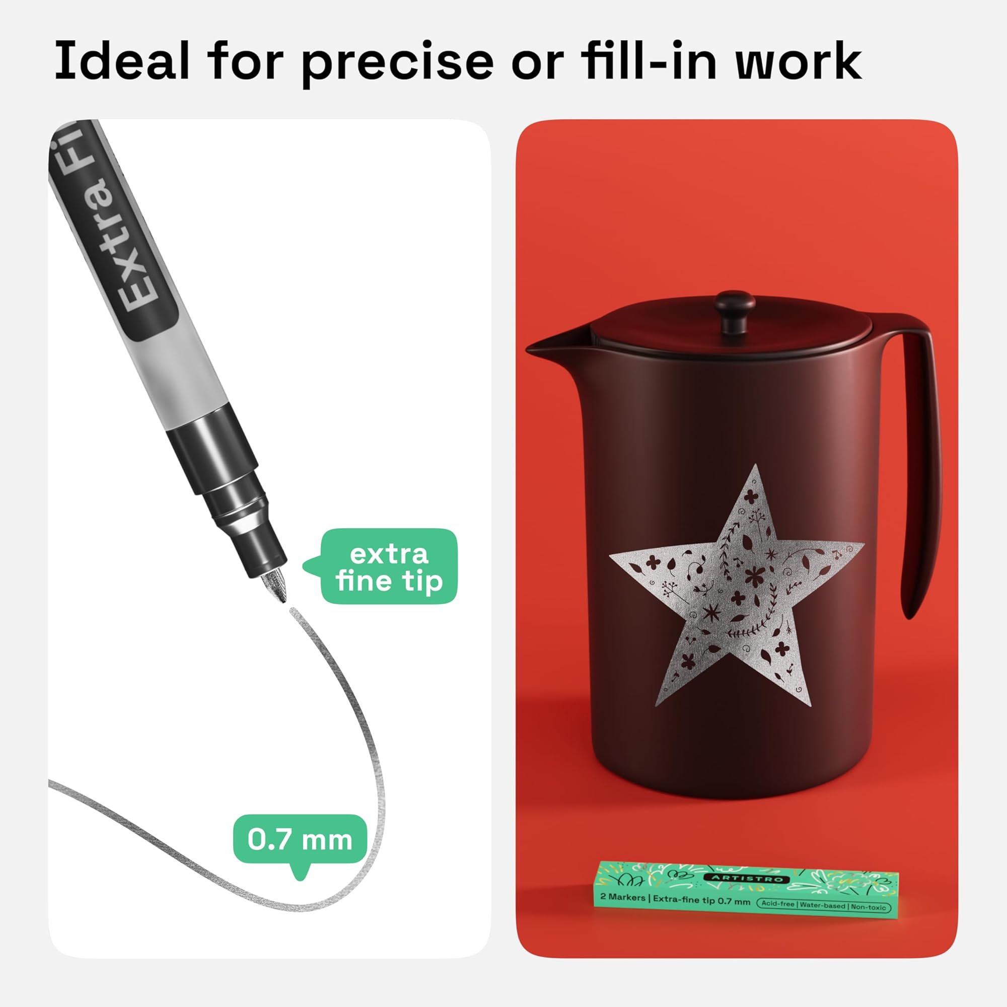 ARTISTRO 2 טושים לצבע אקרילי כסופים - עטי צבע מטאליים בעלי חוד דק במיוחד בגודל 0.7 מ"מ - מושלמים ליצירה, פרויקטים אמנותיים ועוד
