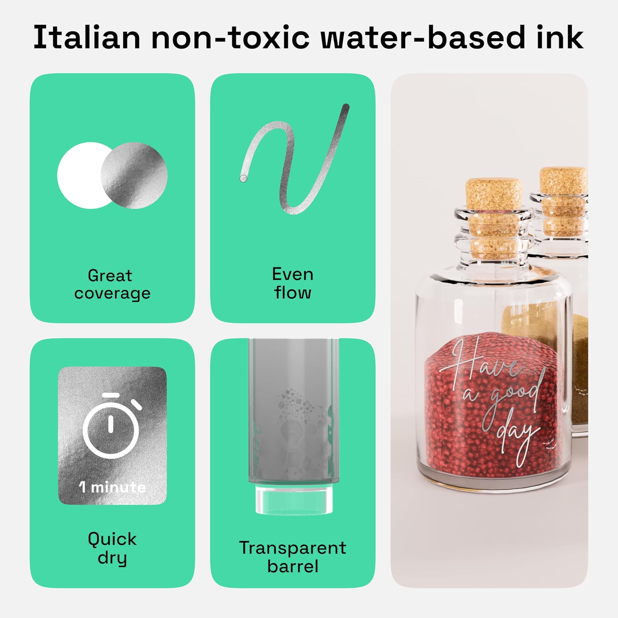 - איכות פרימיום: חבילה של 2 עטי צבע אקריליים בצבע כסף עדין במיוחד של Artistro משתמשת בדיו אקרילי עז המתייבש במהירות ליצירת גימור אטום ומבריק עמיד על כל משטח. כל עט צבע אקרילי מצויד בדיו איטלקי וחוד יפני עמיד.