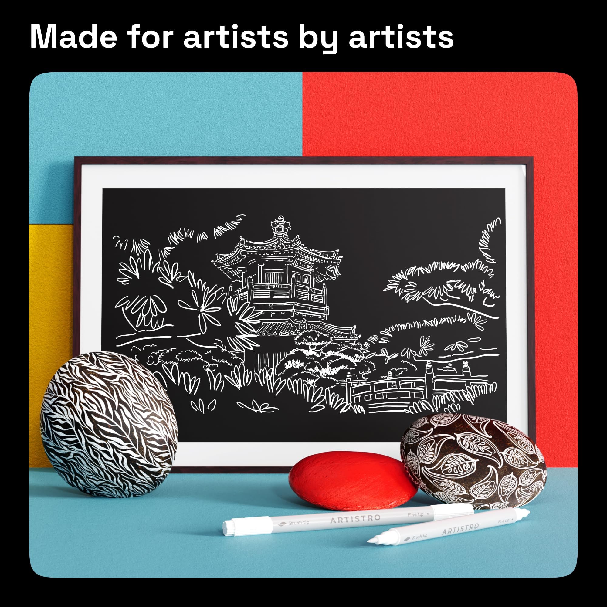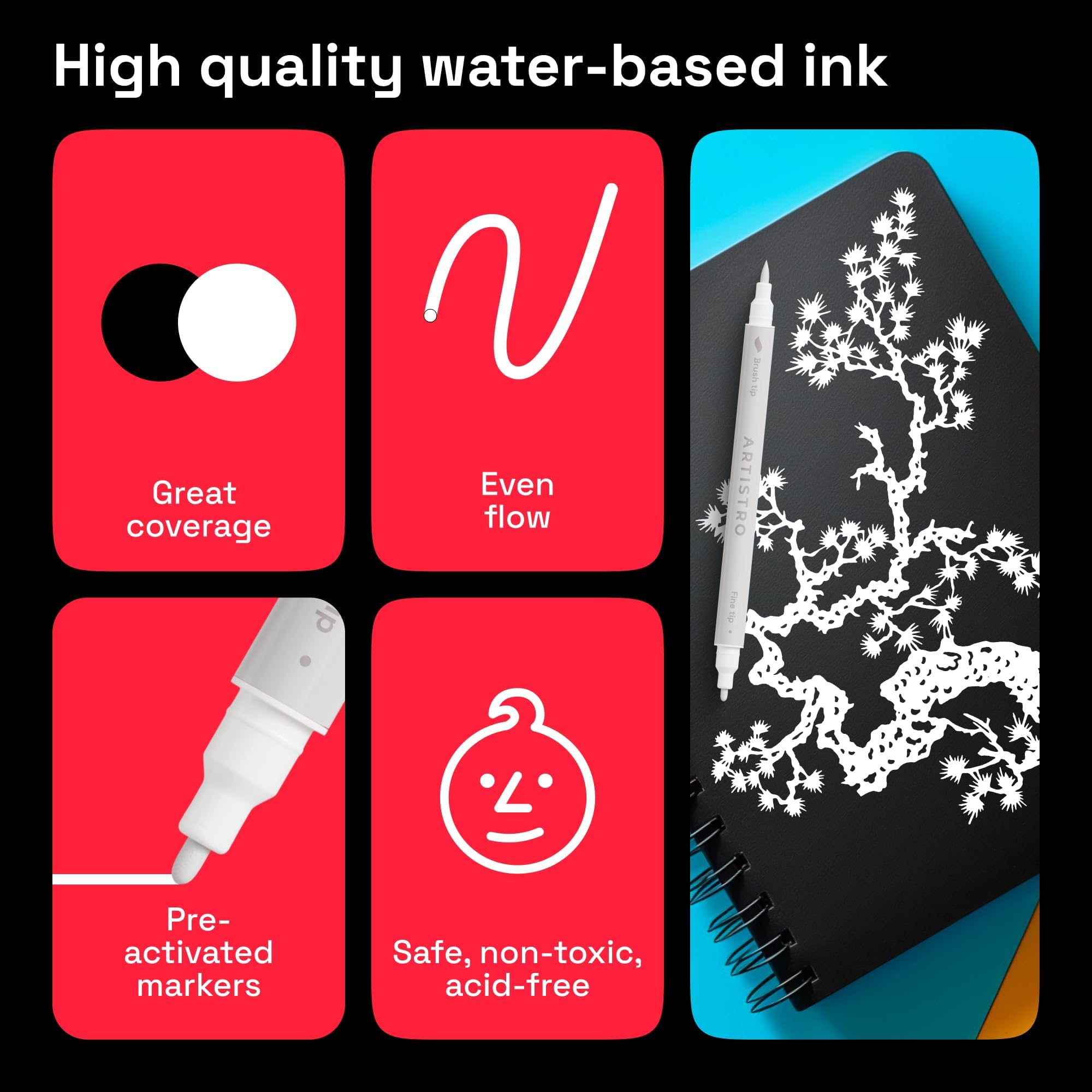 סט של 2 עטי צבע אקריליים ARTISTRO עם מברשת כפולה + צבע לבן עדין