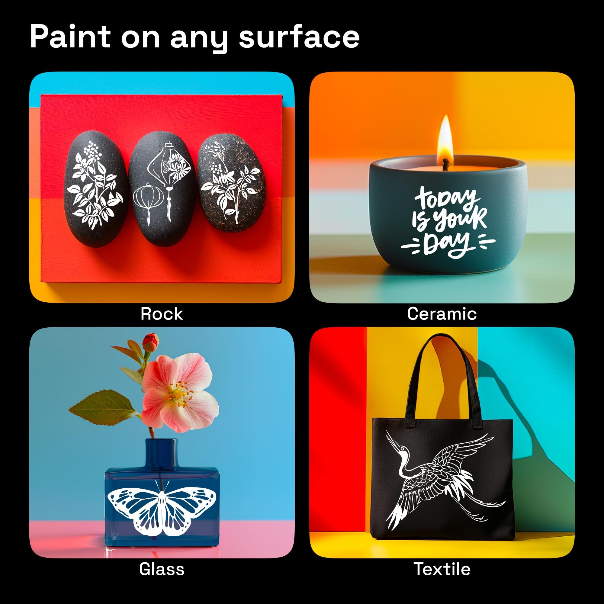 - איכות פרימיום: חבילה לבנה זו של עטי צבע כוללת צבע אקרילי איכותי שמתייבש אטום, כך שאין צורך למרוח שכבה שנייה! הדיו בטושי הצבע לקנבס הוא על בסיס מים ובעל חוד עמיד.