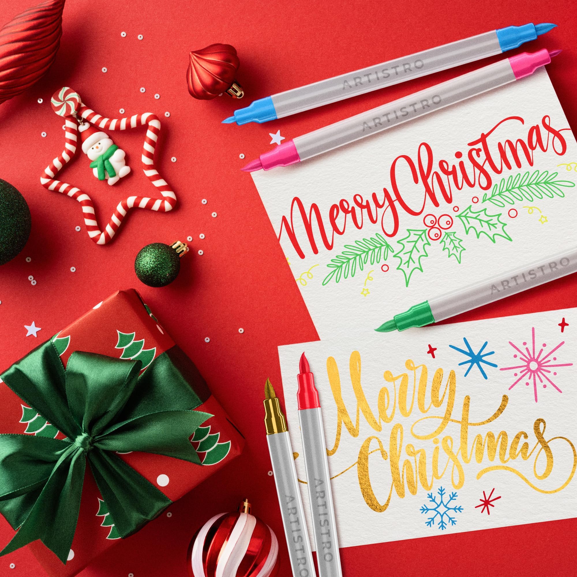 ARTISTRO 36 עטי צבע אקרילי - מברשת כפולה + קצה עדין אידיאלי לקליגרפיה - טושים צבע אקריליים לבד, אבן, זכוכית, עץ, עשה זאת בעצמך - ציוד לאמנות, מתנות, רעיונות למתנה לחג המולד