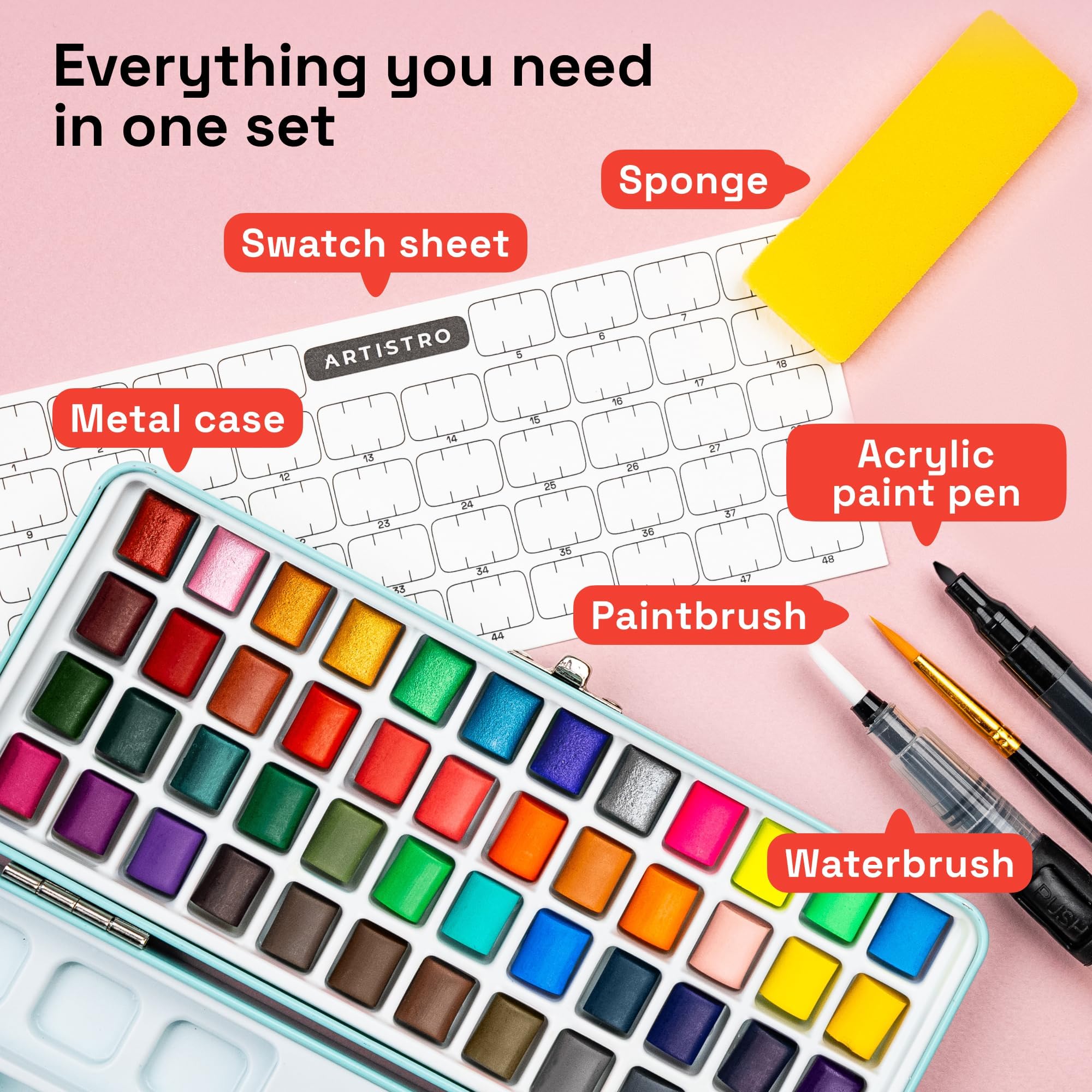 סט צבעי מים של ARTISTRO - ערכת צבע ניידת - מושלמת למתנה למבוגרים, בני נוער, מתבגרים וילדים