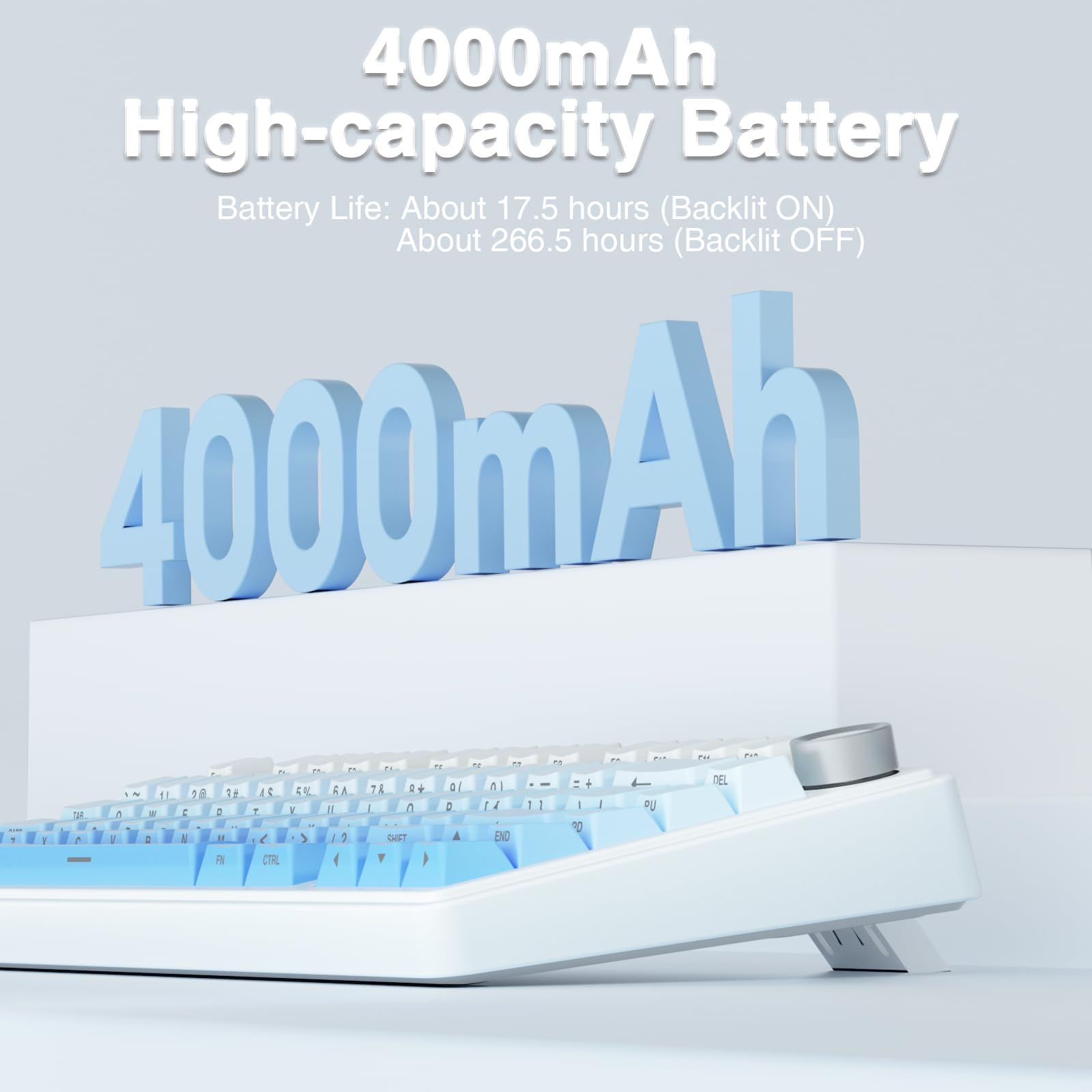 - מקלדת חיבור תלת-מצבית: מקלדות מכניות אלחוטיות AULA F75 Pro פועלות עם Bluetooth 5.0, חיבור אלחוטי 2.4GHz וחיבור USB קווי, יכולות לחבר עד חמישה מכשירים בו זמנית, ולעבור בקלות באמצעות מקשי קיצור או כפתור צד. מקלדת המחשב F75 Pro מתאימה למחשבים ניידים, מחשבים ניידים, טאבלטים, טלפונים ניידים, PS, XBOX וכו', כדי לענות על כל צרכי המשתמשים. בנוסף, המקלדת הנטענת מצוידת בסוללה בעלת קיבולת גדולה של 4000mAh, בעלת חיי סוללה ארוכים.