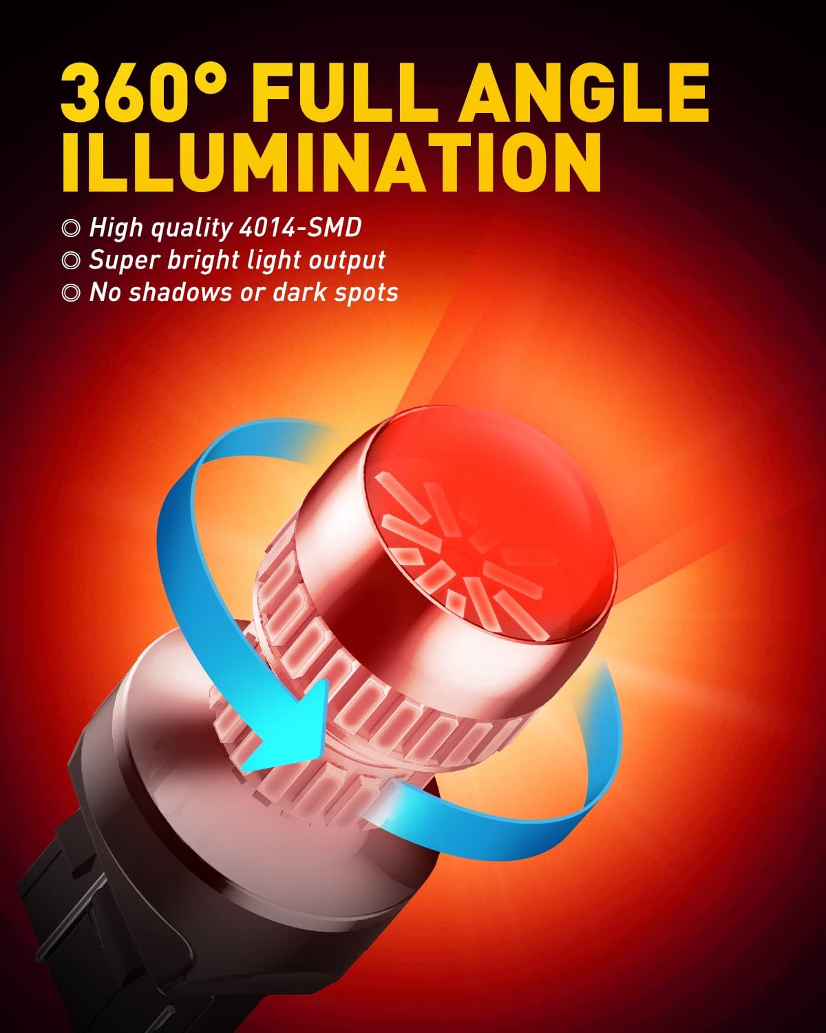 נורת לד AUXITO משודרגת 7440 7443 אדומה לאורות אחוריים, אורות בלם T20 W21W 7441 7444 בהירה במיוחד תחליף לד לפנסי איתות אחוריים ובלמים, חבילה של 2