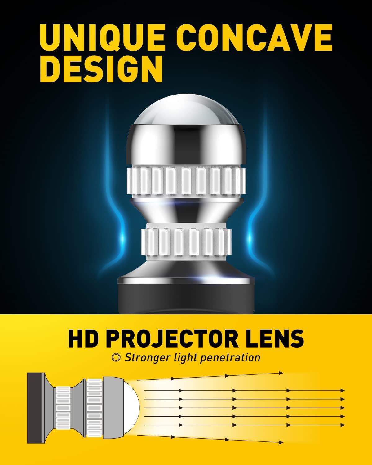 - עיצוב ייחודי של צורת הלוגן חיקוי. עיצוב הדומה לצורת נורת הלוגן ורצף של 54 שבבי LED 4014-SMD מסביב בדיוק לגוף התאורה. מספק יעילות הארה גבוהה של 360 מעלות עם אור ענבר מלא, קל יותר לזיהוי ובטוח יותר לנהיגה.
