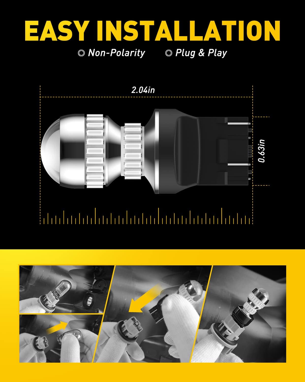 - חוסר קוטביות. ניתן להשתמש עבור אורות בלם, אורות אחוריים, אורות עצירה, אורות חניה, אורות נסיעה ביום וכו'. כלי רכב רגישים מסוימים ייתקלו בבעיות Canbus לאחר ההתקנה, יידרשו נגדי עומס או ממסר מהבהב כדי לפתור בעיות אלה, ניתן ליצור איתנו קשר דרך הודעת הקונה של אמזון כדי לקבל עזרה ופתרונות.