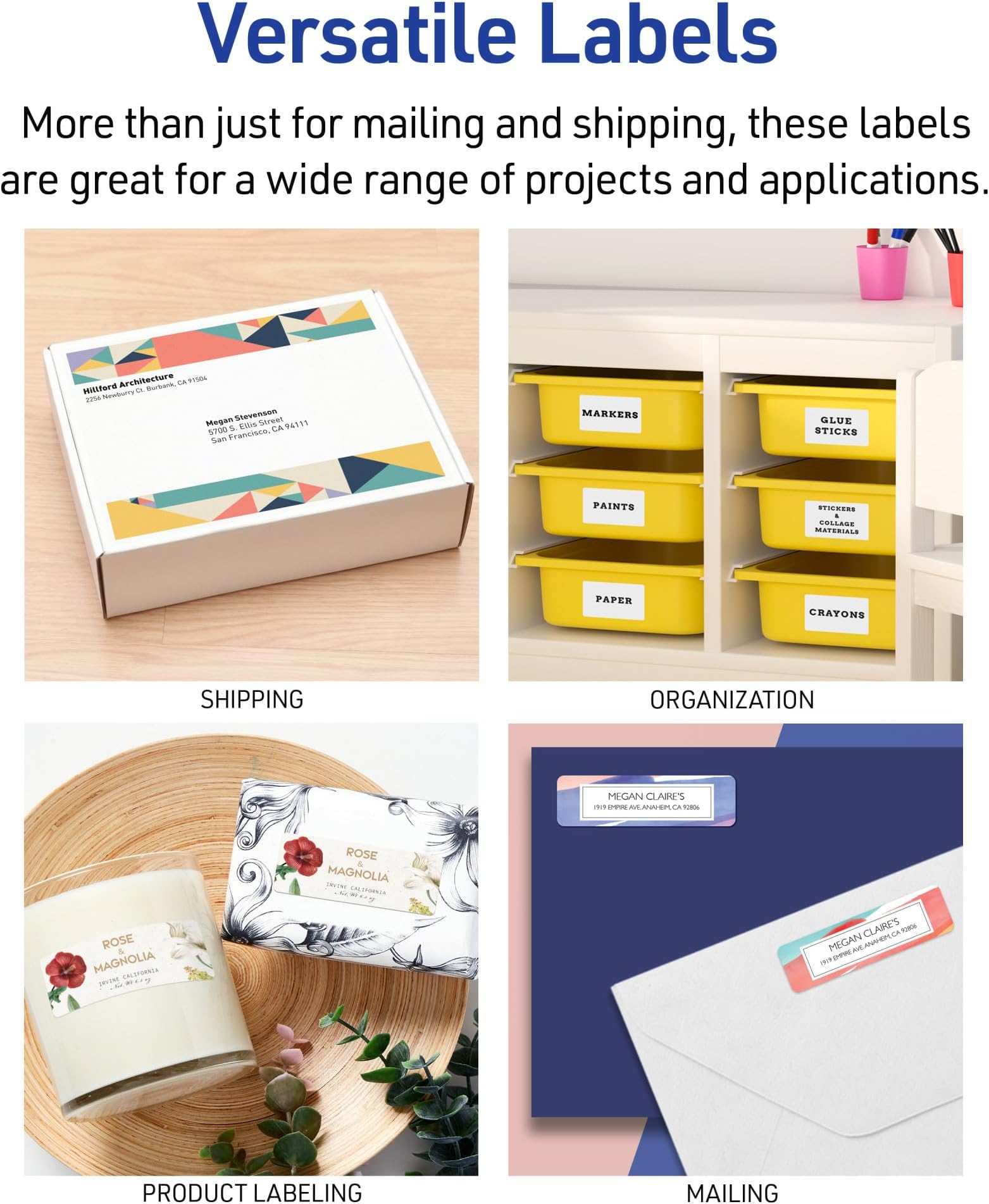 - תוויות מלבניות רב-תכליתיות אלה נהדרות לדיוור ומשלוח, תוויות מוצרים, ארגון, זיהוי ועוד.